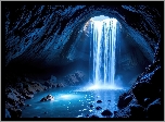 Skały, Jaskinia, Wodospad, Rzeka, AI