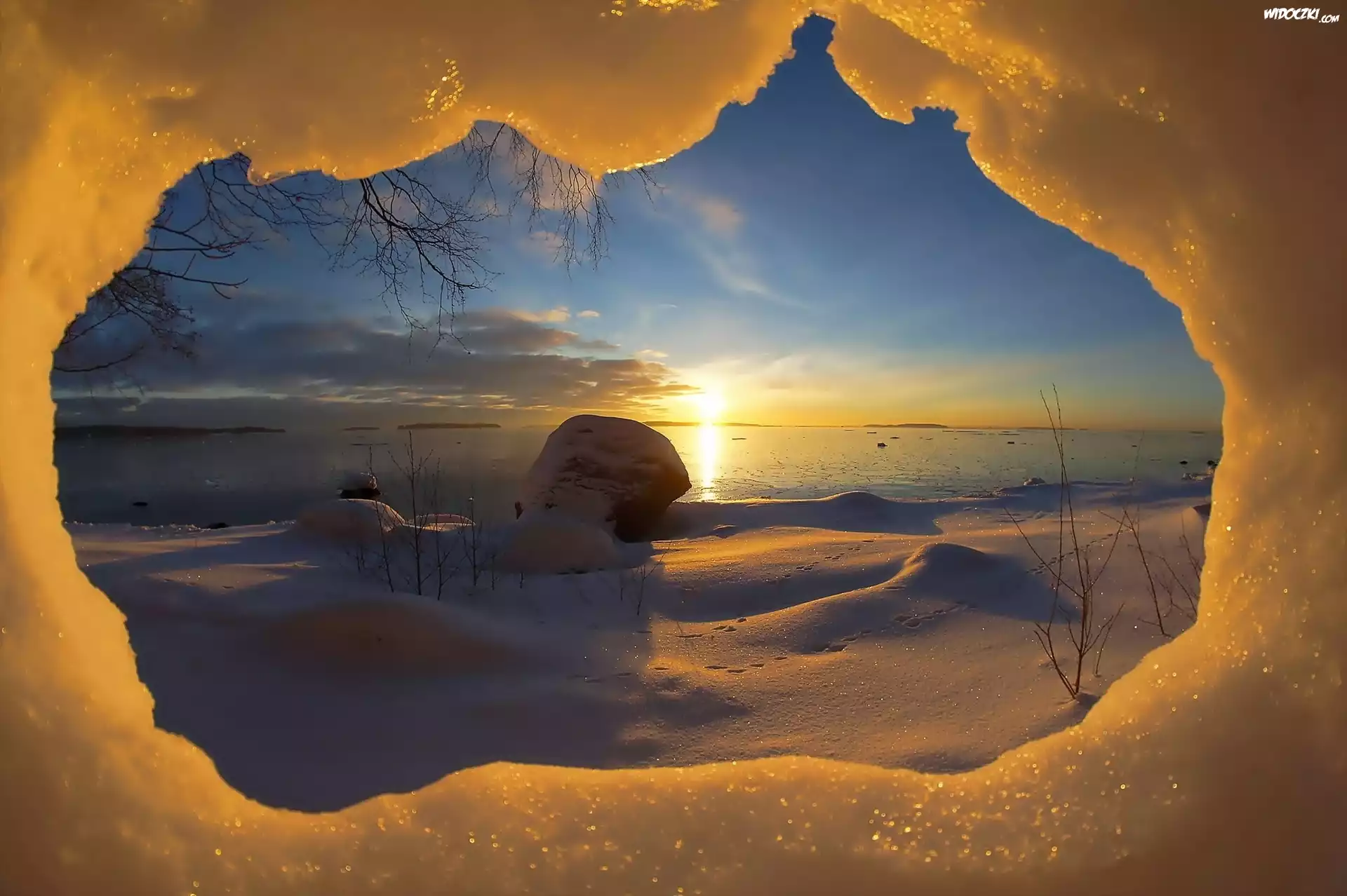 Zdjęcia, Zima, Jaskinia, Słońce