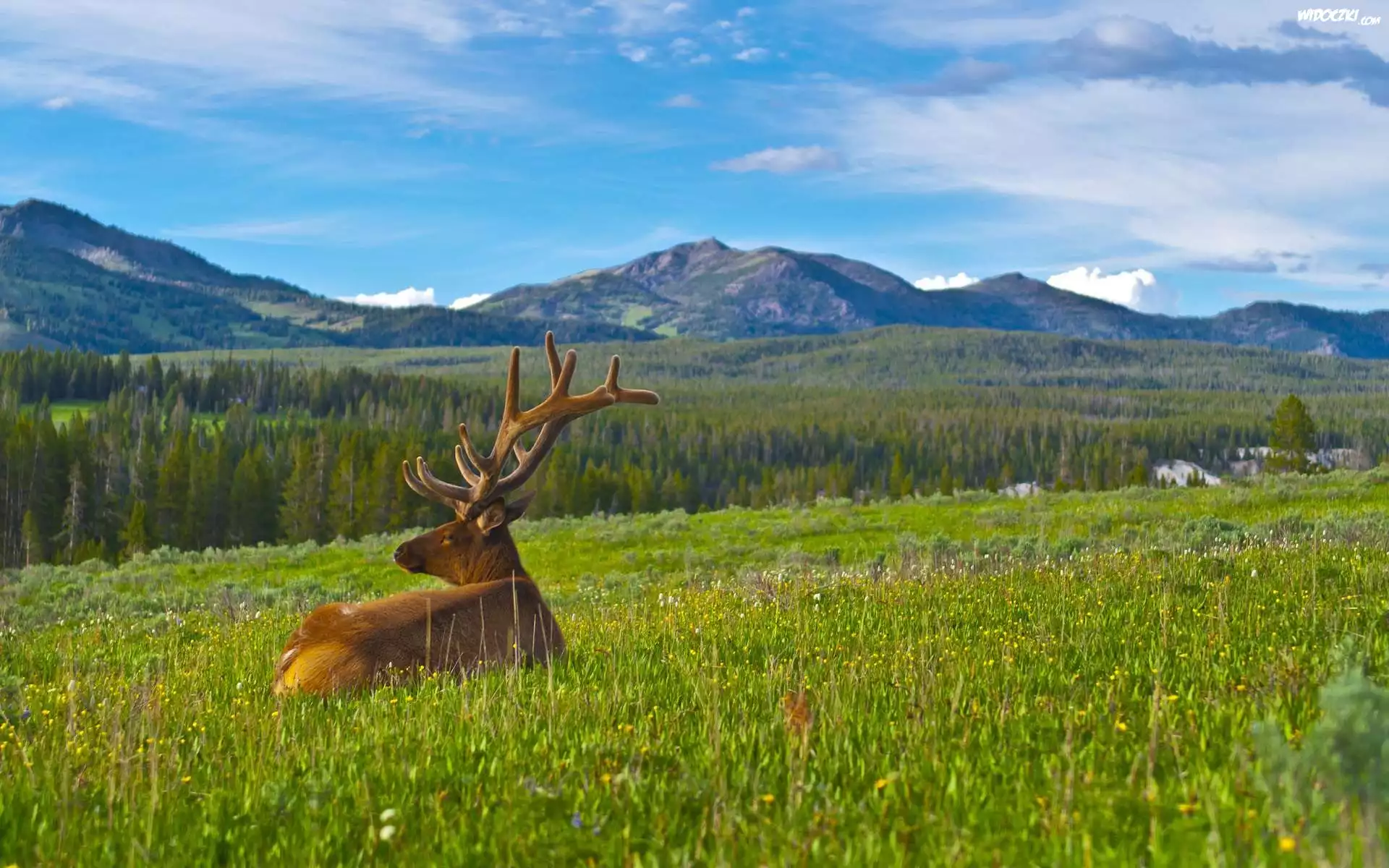 Zdjęcia, Jeleń, Łąka, Góry, Jesień