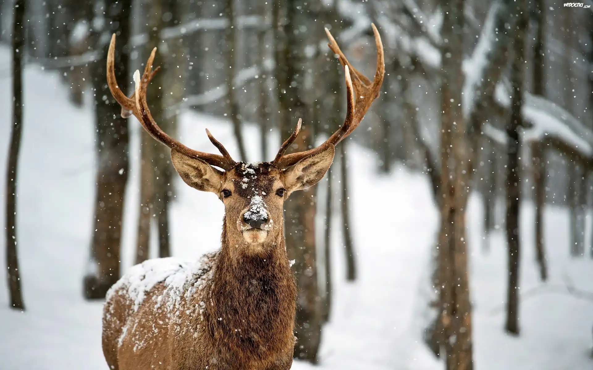 Zdjęcia, Jeleń, Las, Śnieg, Rozmycie
