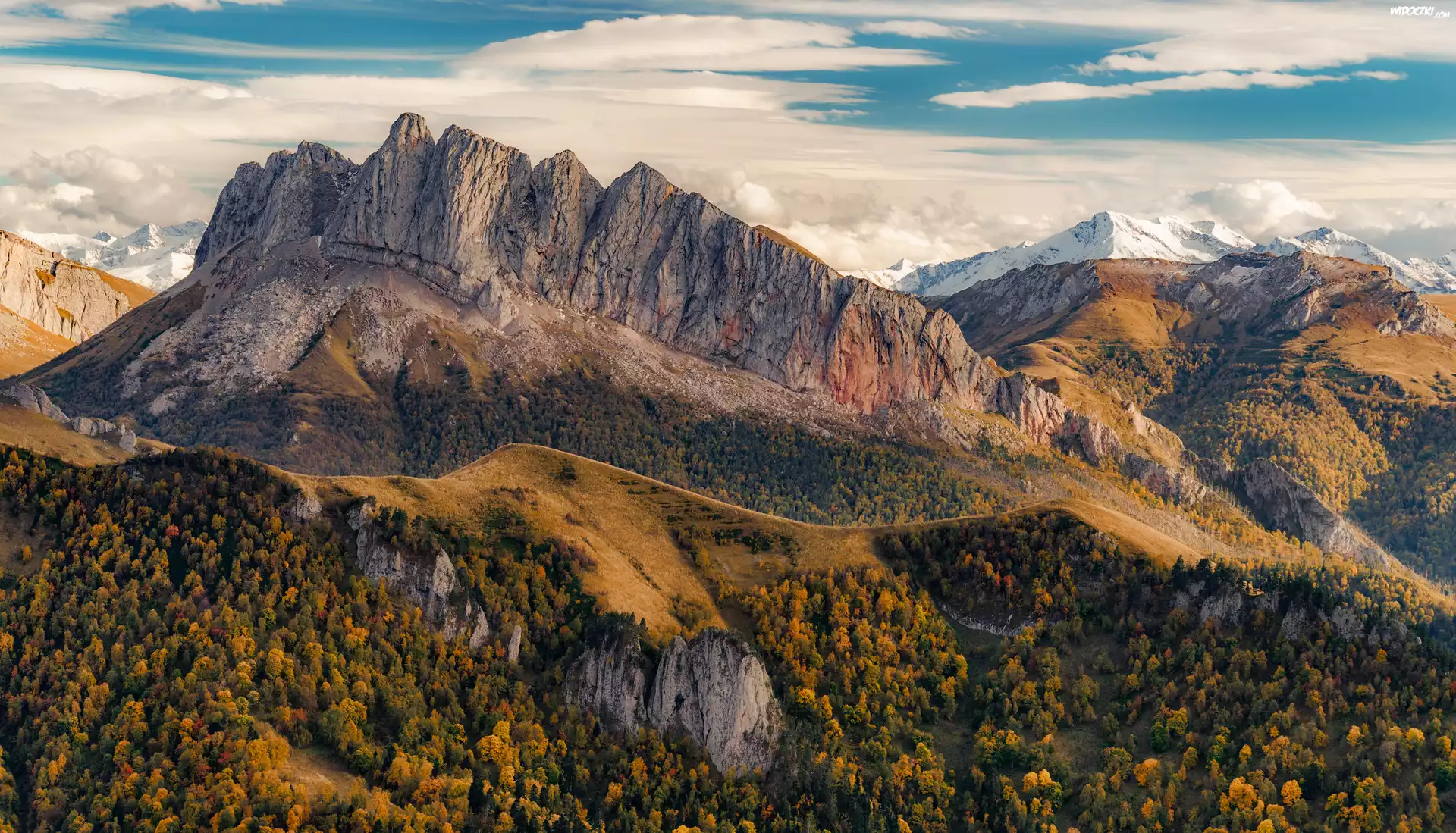 Jesień, Góry, Drzewa, Kaukaz, Adygeja, Rosja