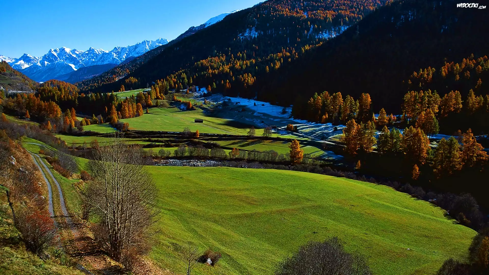 Zdjęcia, Jesień, Góry, Lasy, Łąki, Droga