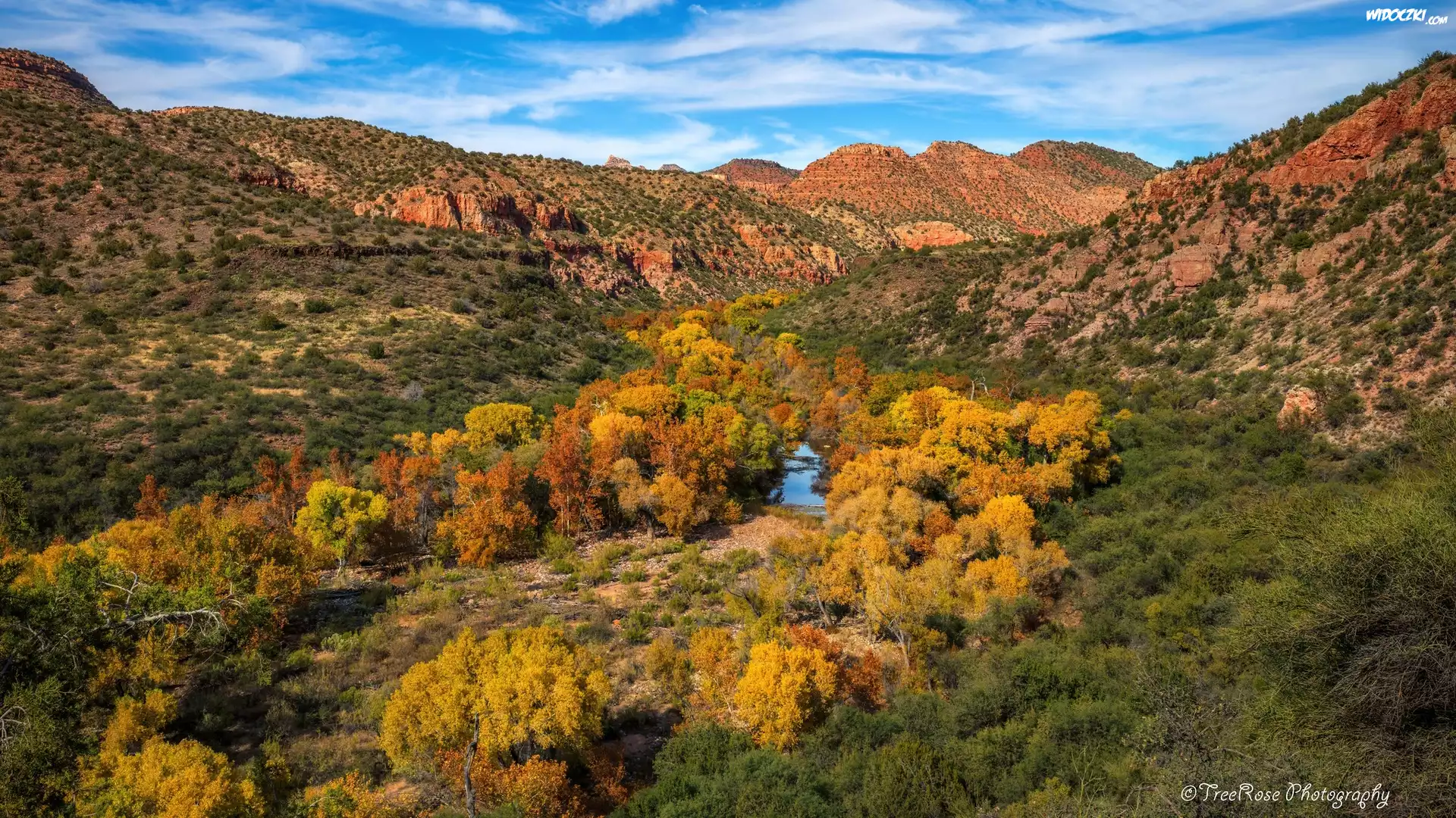 Zdjęcia, Jesień, Drzewa, Góry, Rzeka, Kanion Sycamore, Arizona, Stany Zjednoczone