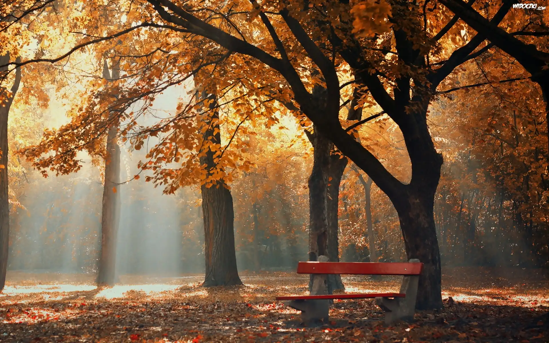 Zdjęcia, Jesień, Park, Ławka, Mgła