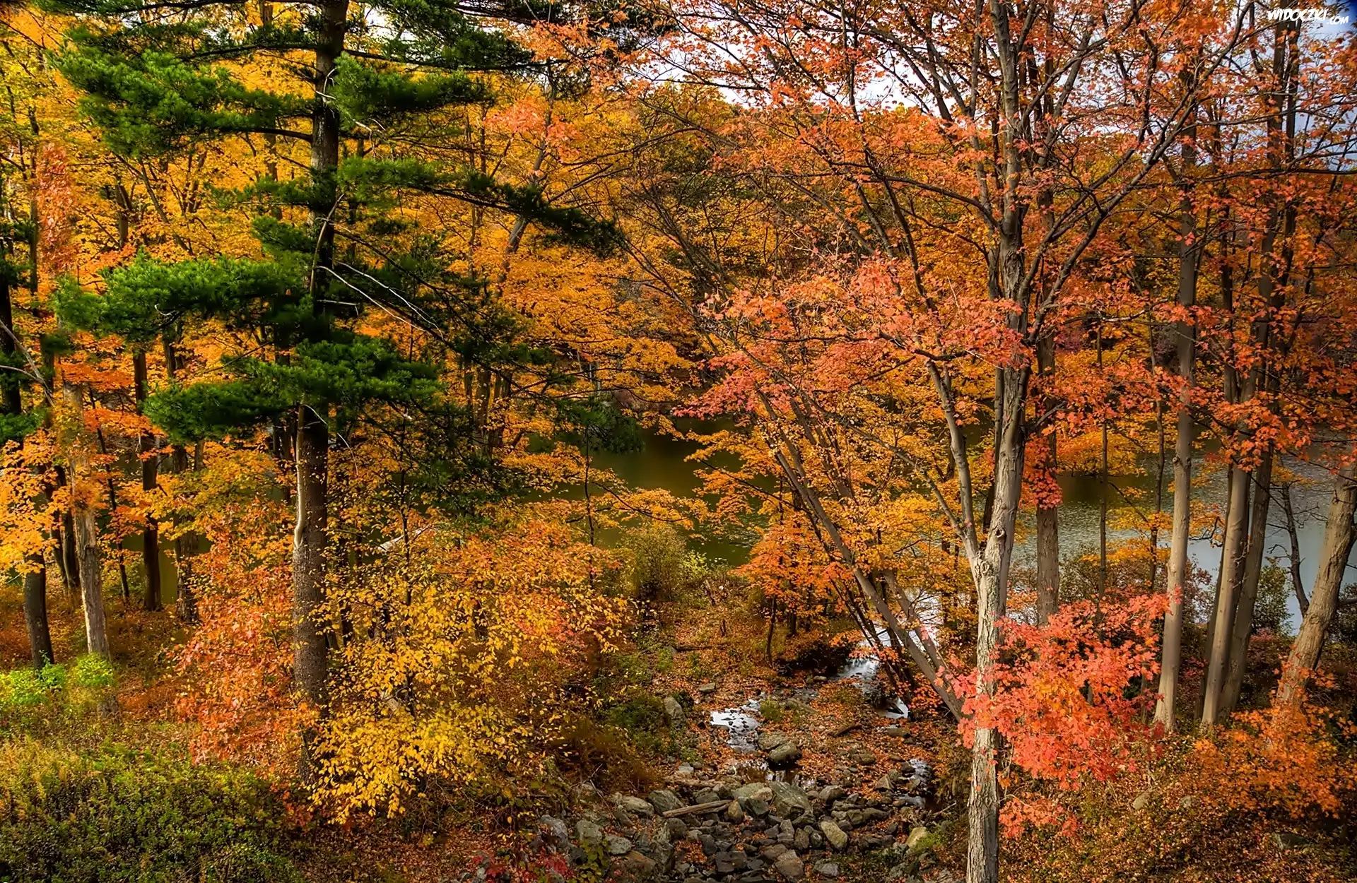 Zdjęcia, Jesień, Las, Bagna, Kamienie