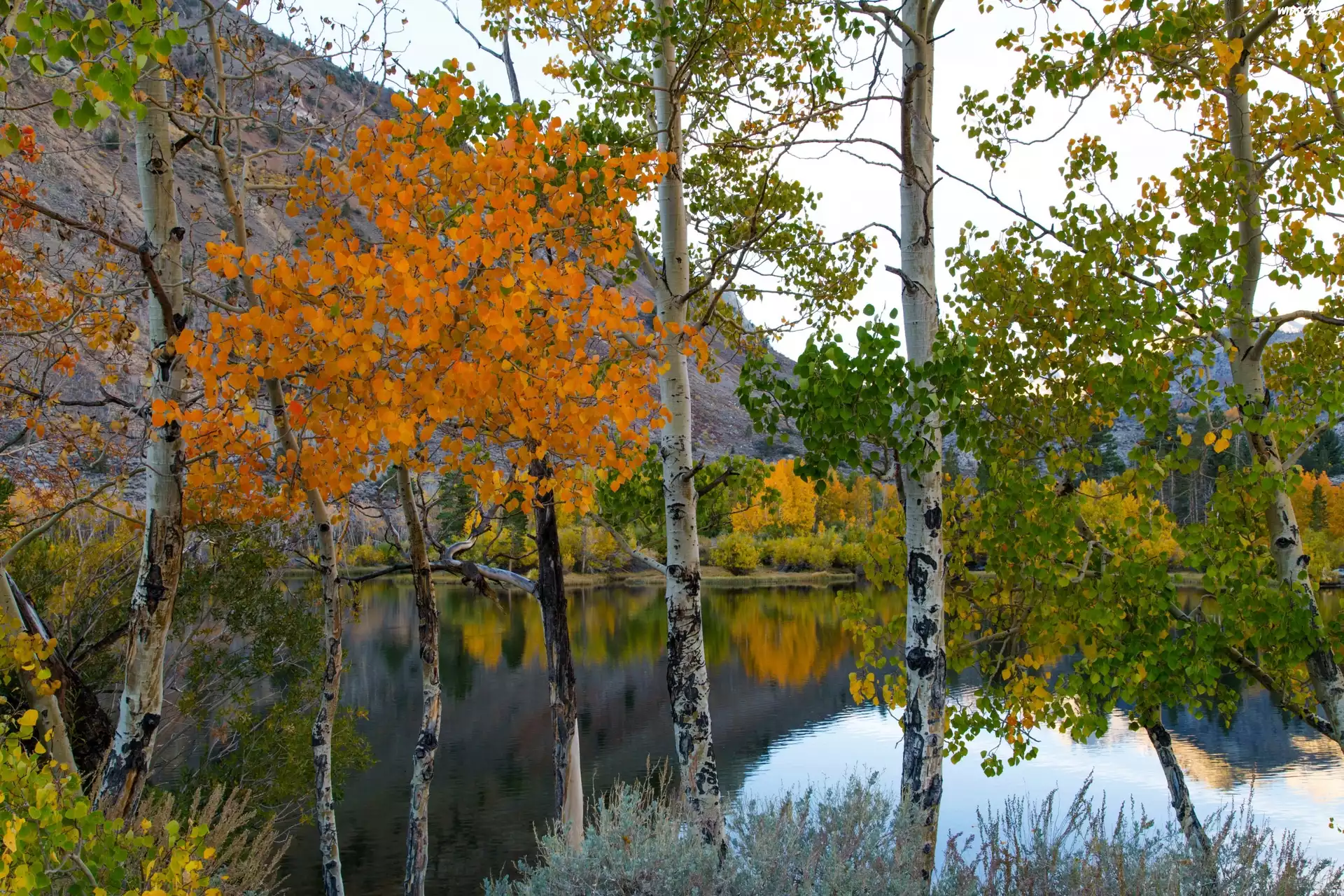 Zdjęcia, Brzozy, Jesień, Jezioro