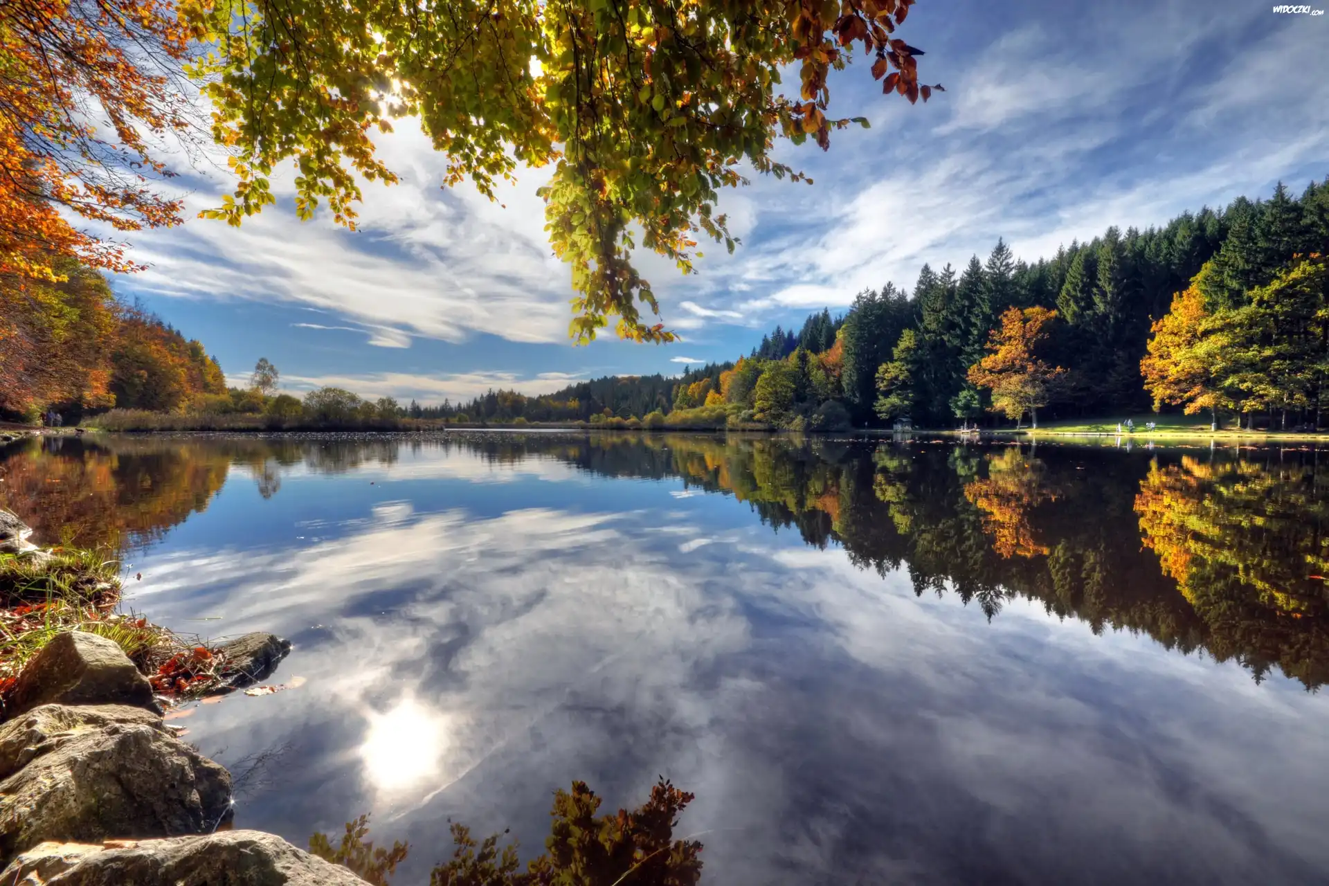 Zdjęcia, Jesień, Las, Jezioro, Chmury, Odbicie