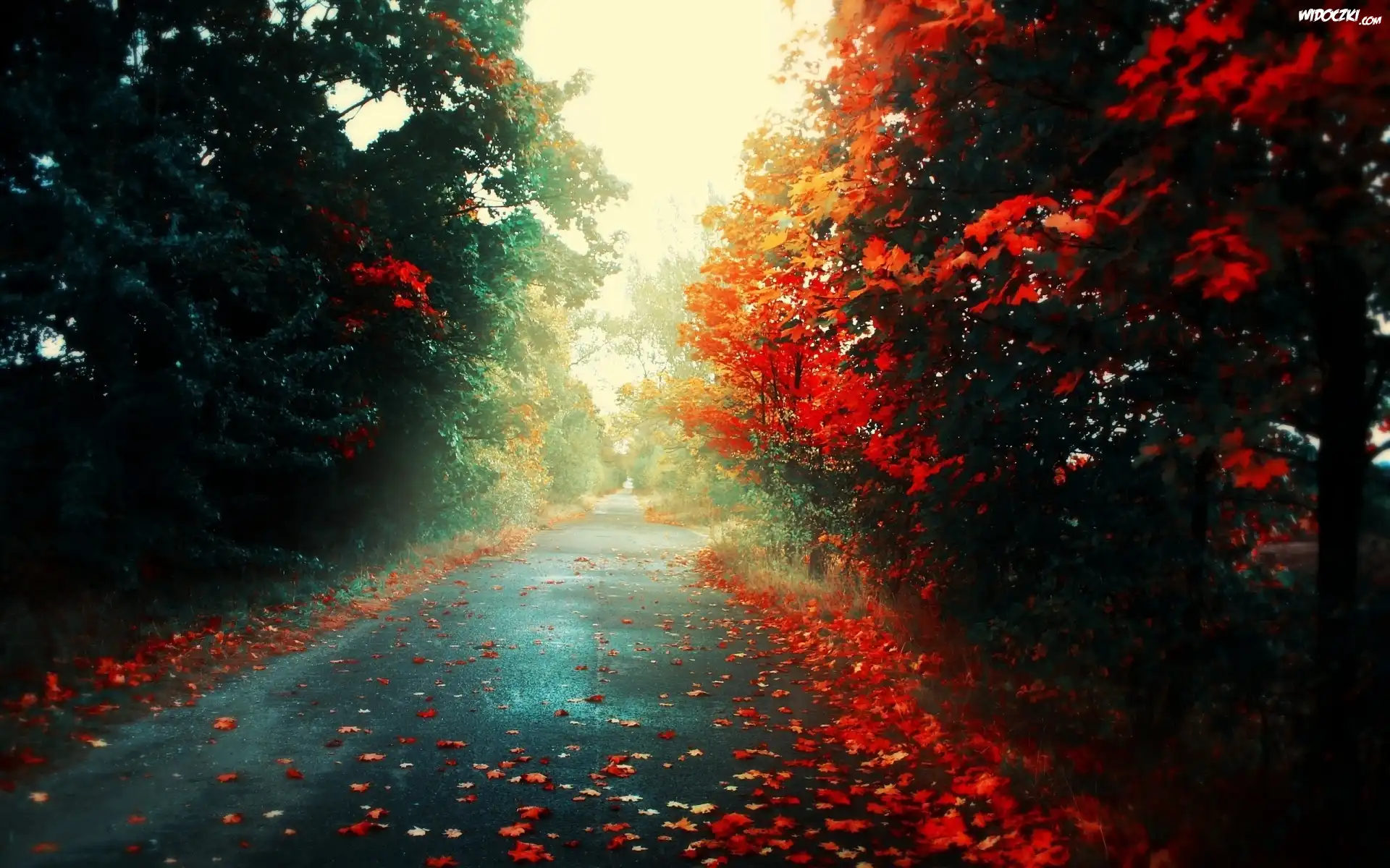 Jesień, Droga, Czerwone, Liście