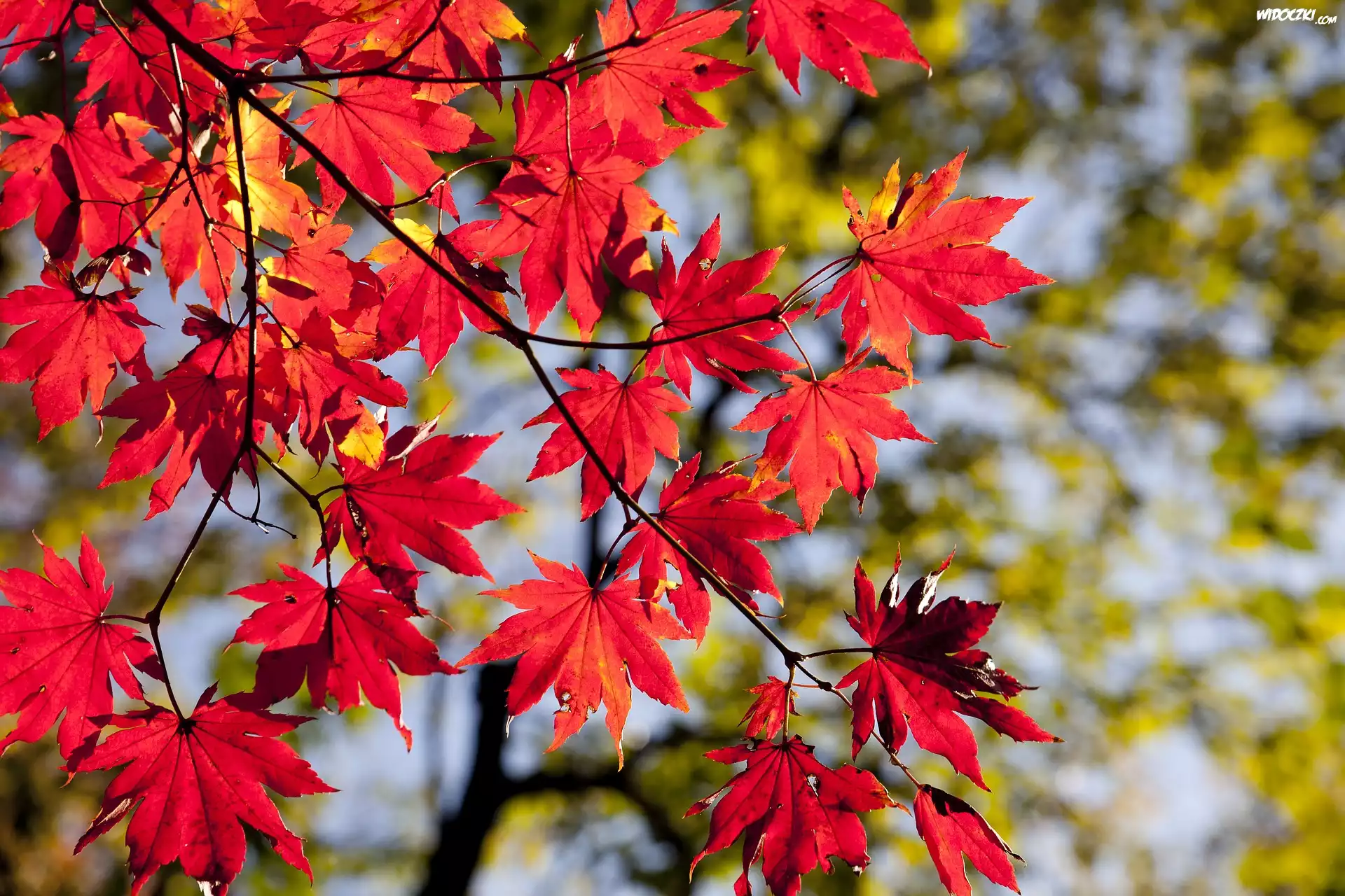 Zdjęcia, Jesień, Liście, Czerwone, Klon