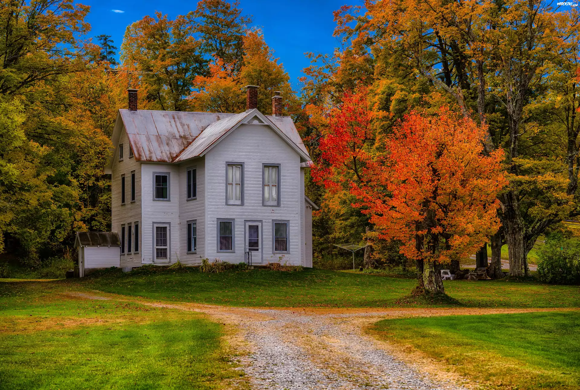 Zdjęcia, Jesień, Drzewa, Dom, Droga