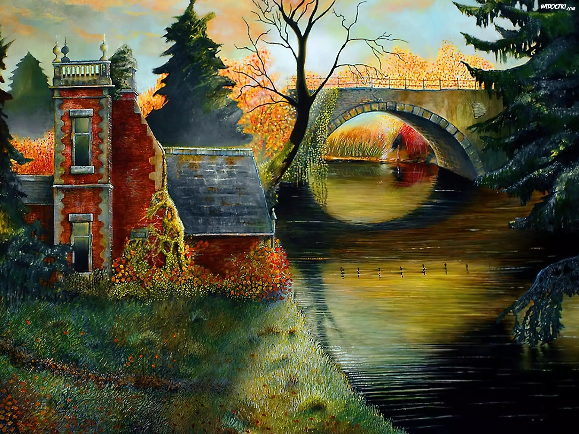 Jesień, Most, Dom, Rzeka