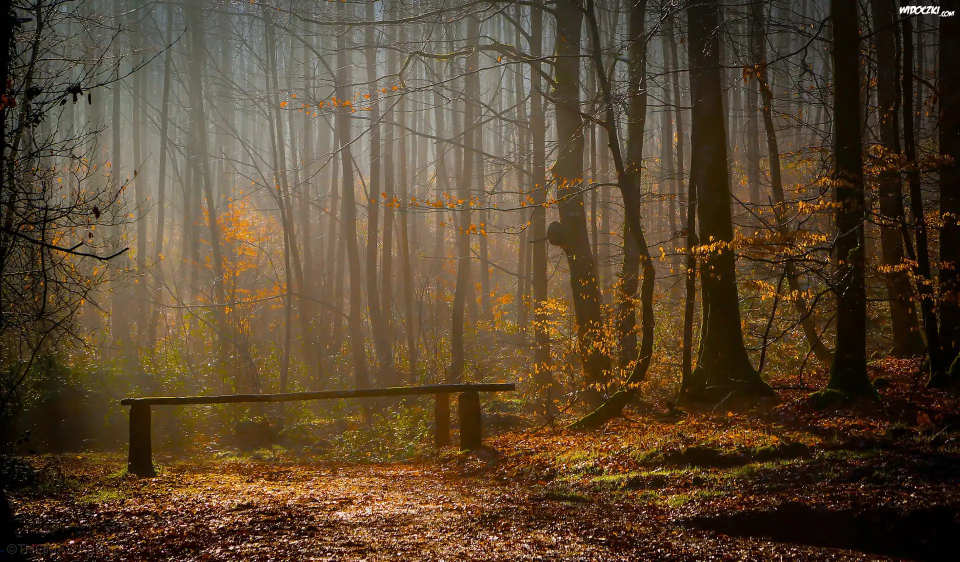 Zdjęcia, Jesień, Las, Drzewa, Drewniany, Szlaban