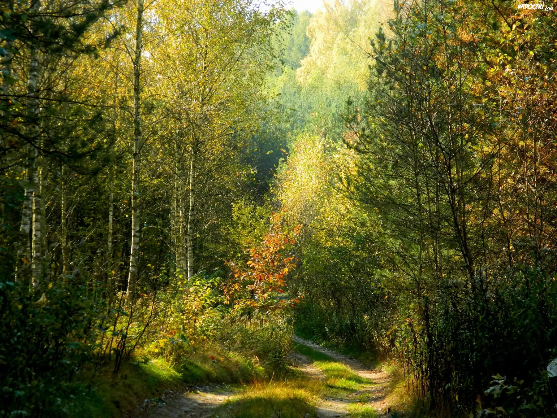 Zdjęcia, Jesień, Las, Brzozowy, Droga, Leśna