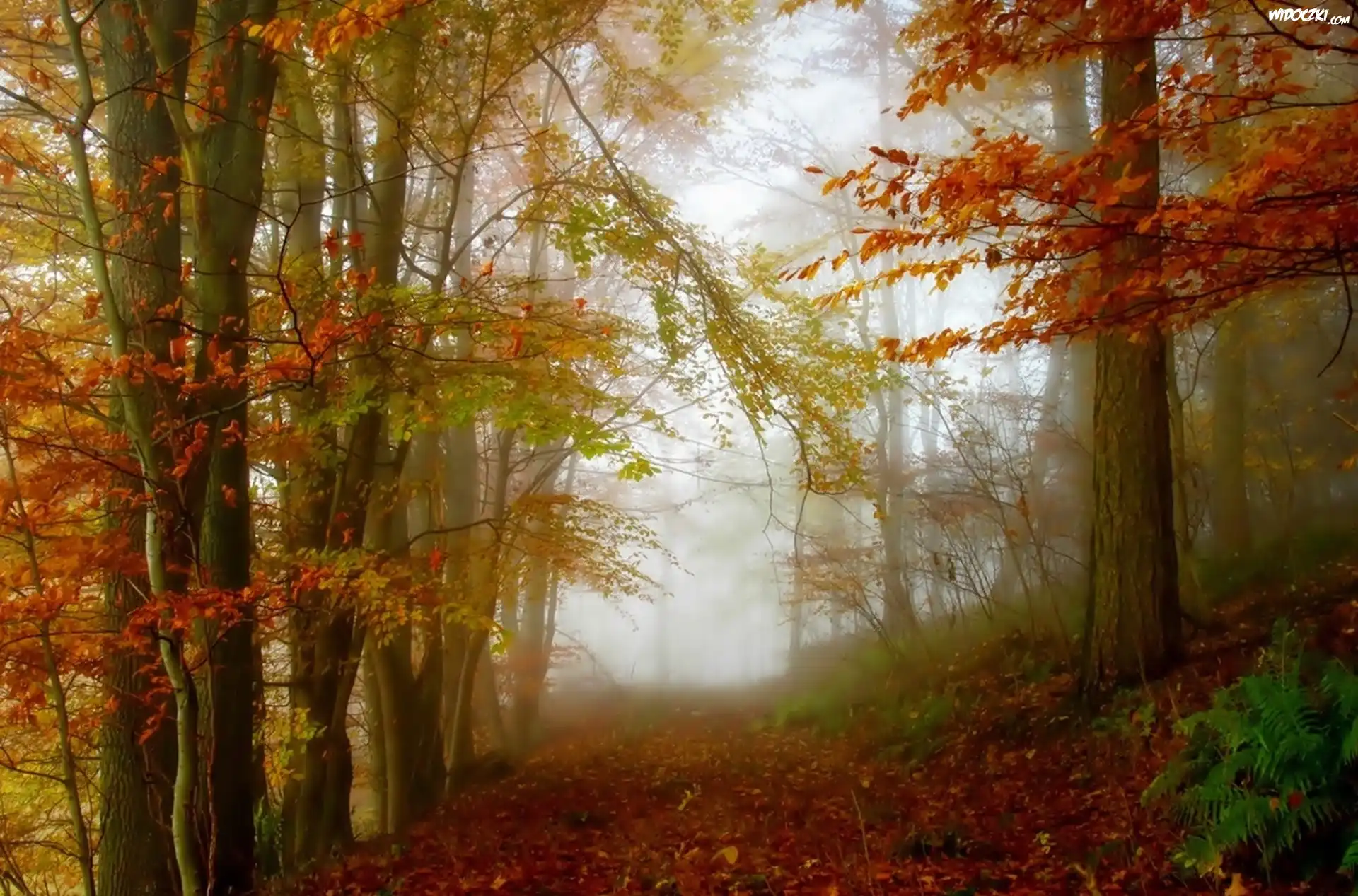 Zdjęcia, Jesień, Las, Droga, Mgła