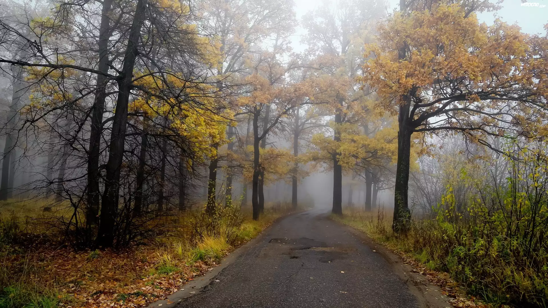 Zdjęcia, Jesień, Las, Droga, Mgła