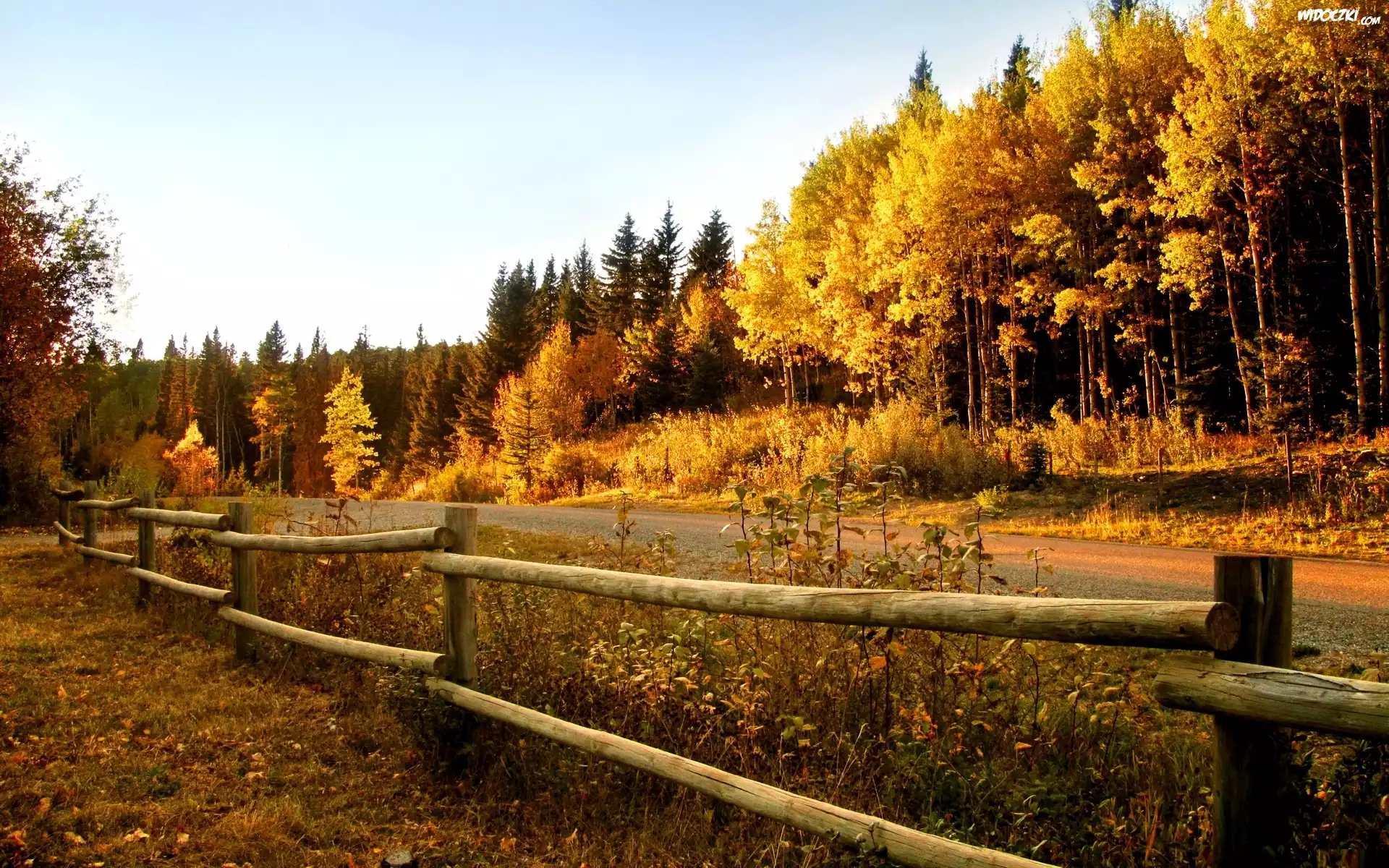 Zdjęcia, Jesień, Las, Droga, Płot