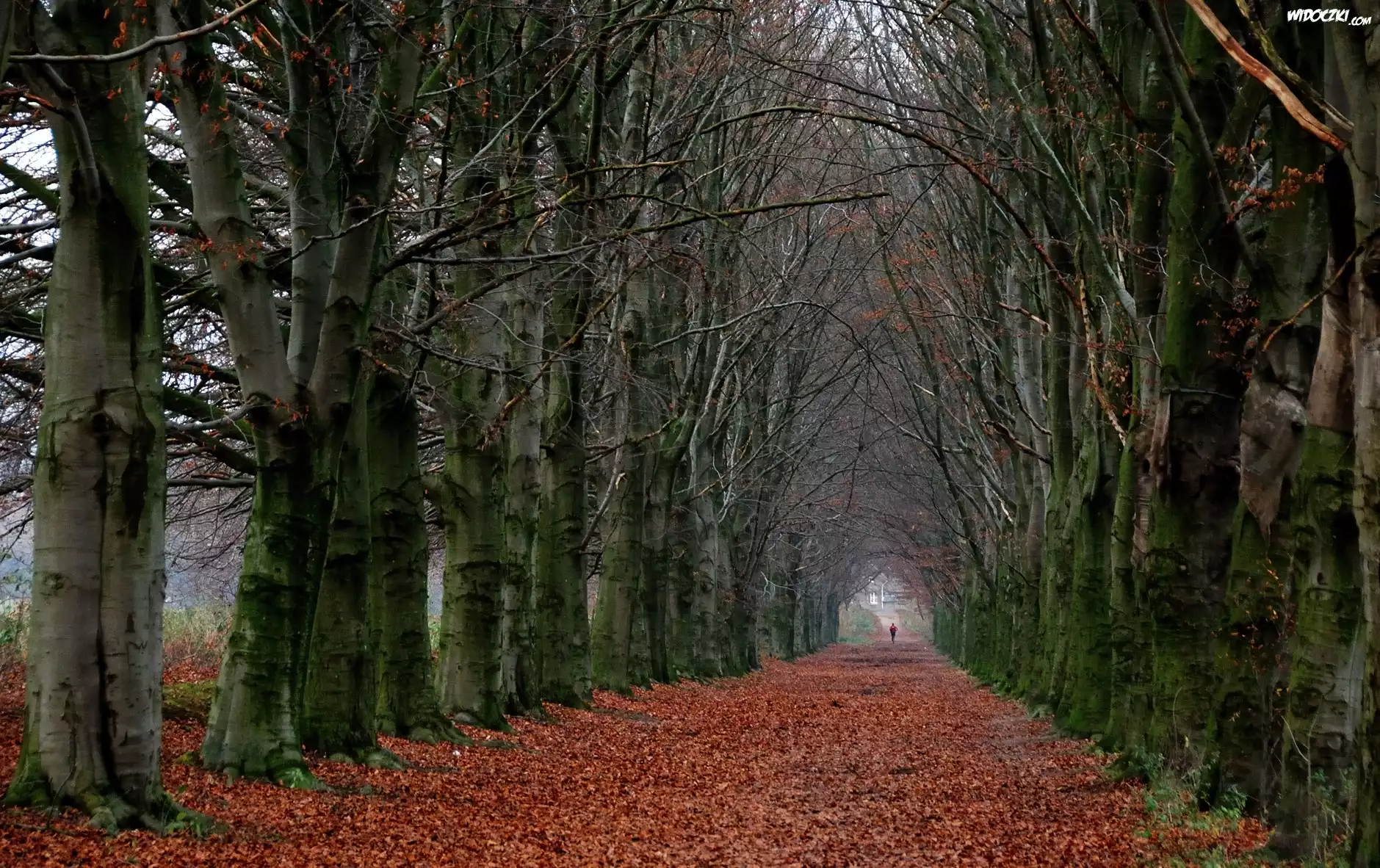 Zdjęcia, Jesień, Opadłe, Liście, Droga, Drzewa
