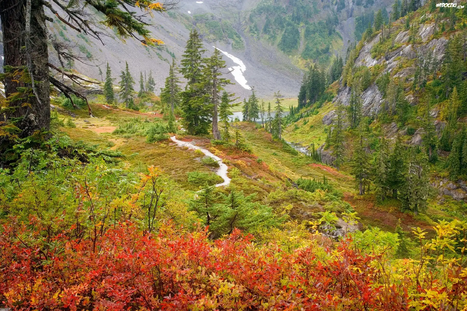 Jesień, Góry, Dróżka, Drzewa