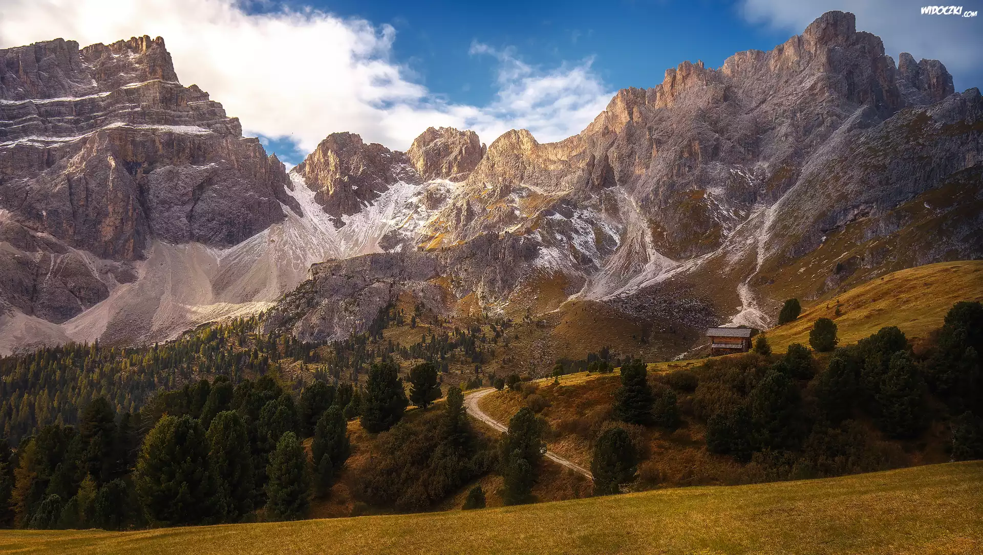 Zdjęcia, Jesień, Góry, Droga, Drzewa, Trawa