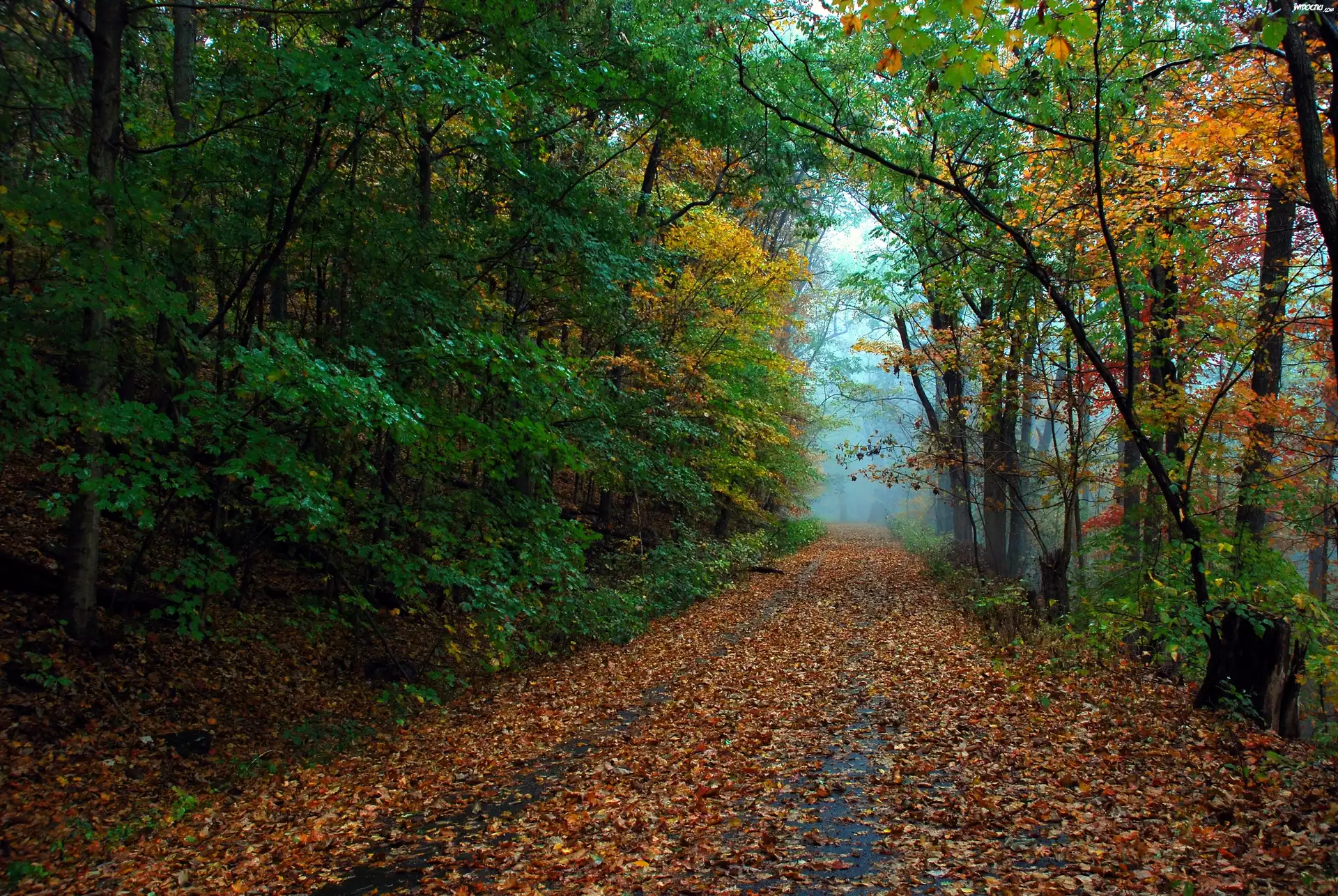 Zdjęcia, Jesień, Las, Droga, Drzewa, Liście