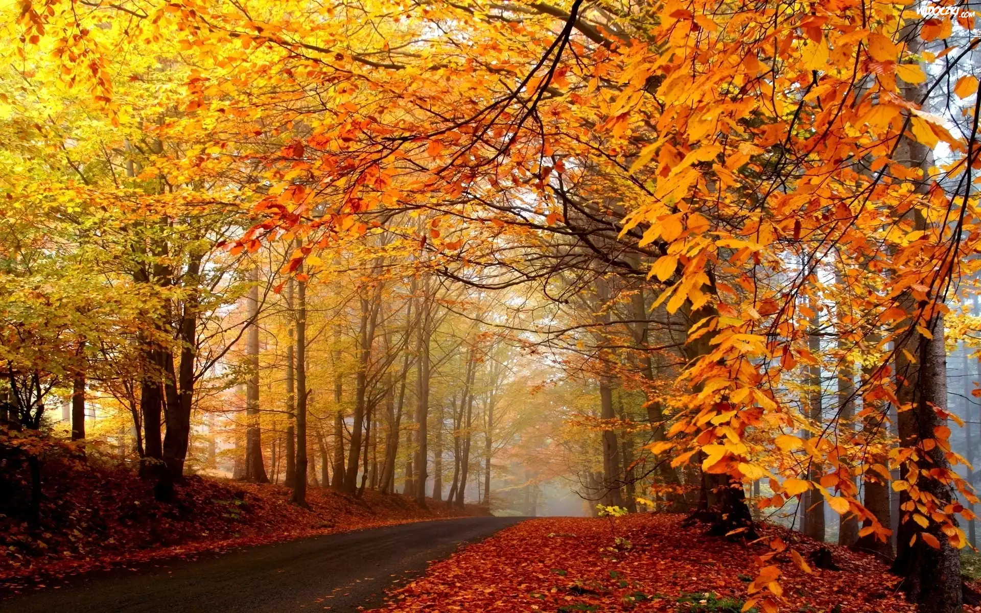 Zdjęcia, Jesień, Droga, Drzewa, Liście