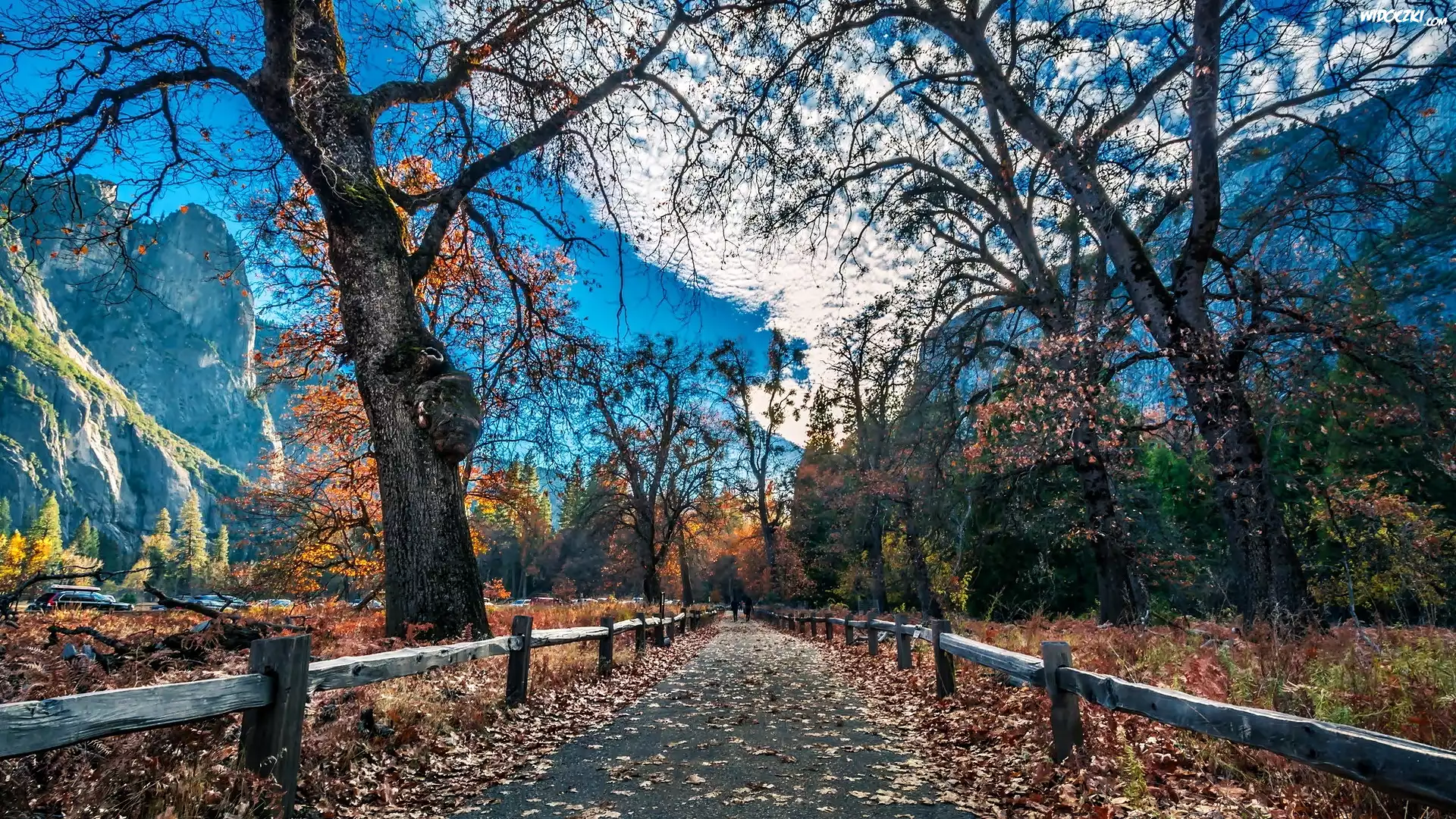 Zdjęcia, Jesień, Góry, Droga, Ogrodzenie, Drzewa, Liście