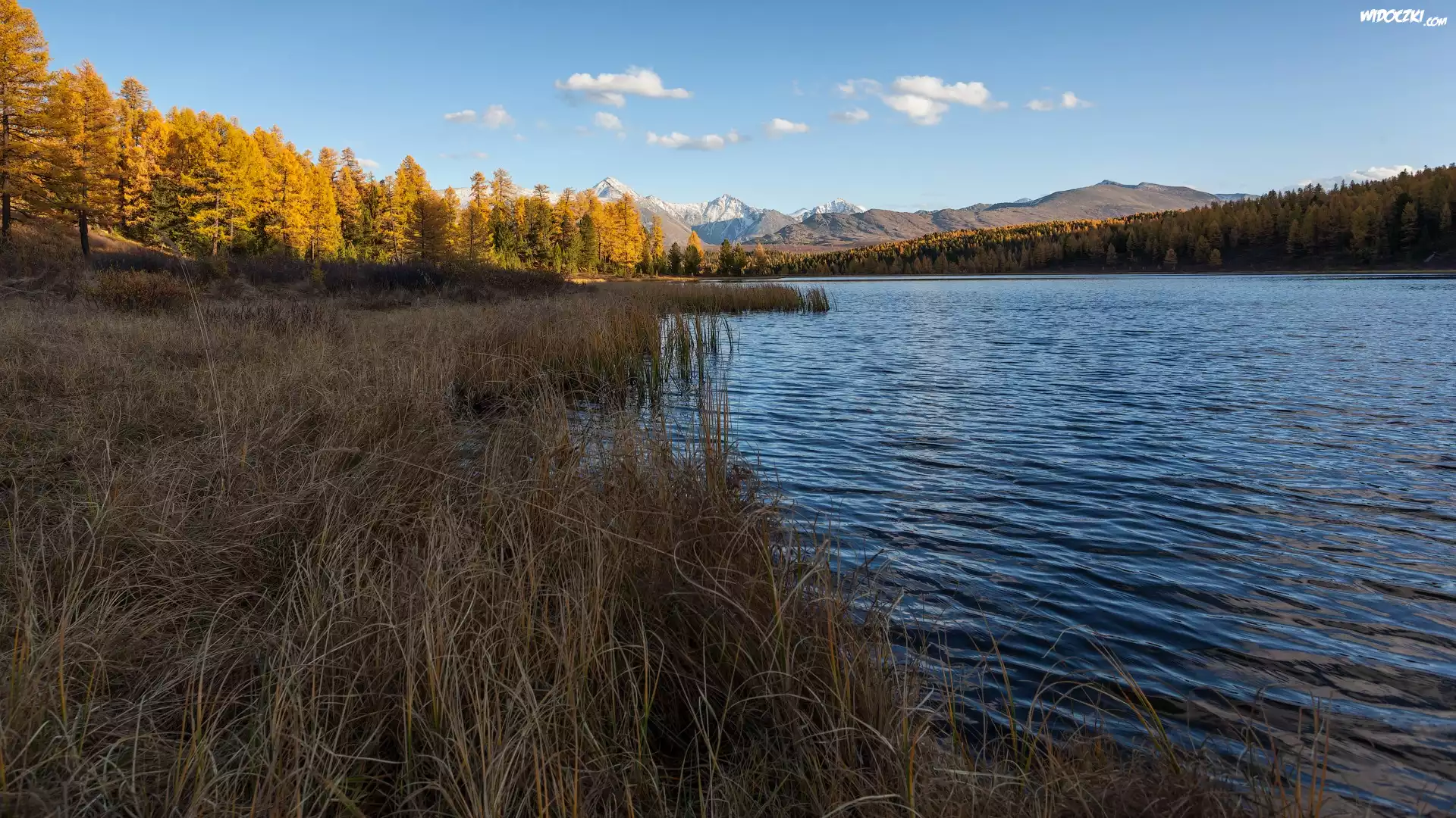 Jesień, Rzeka, Góry, Drzewa, Trawa