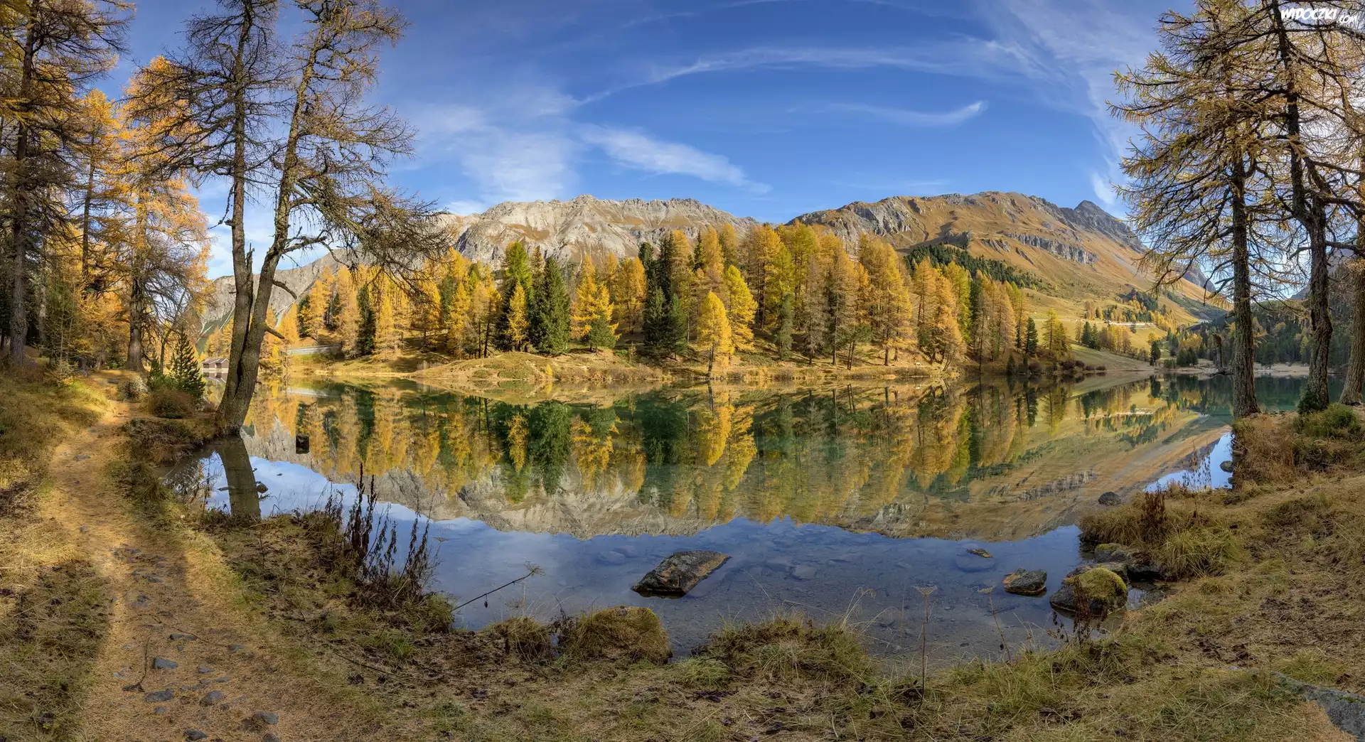 Zdjęcia, Jesień, Góry, Jezioro, Drzewa, Las