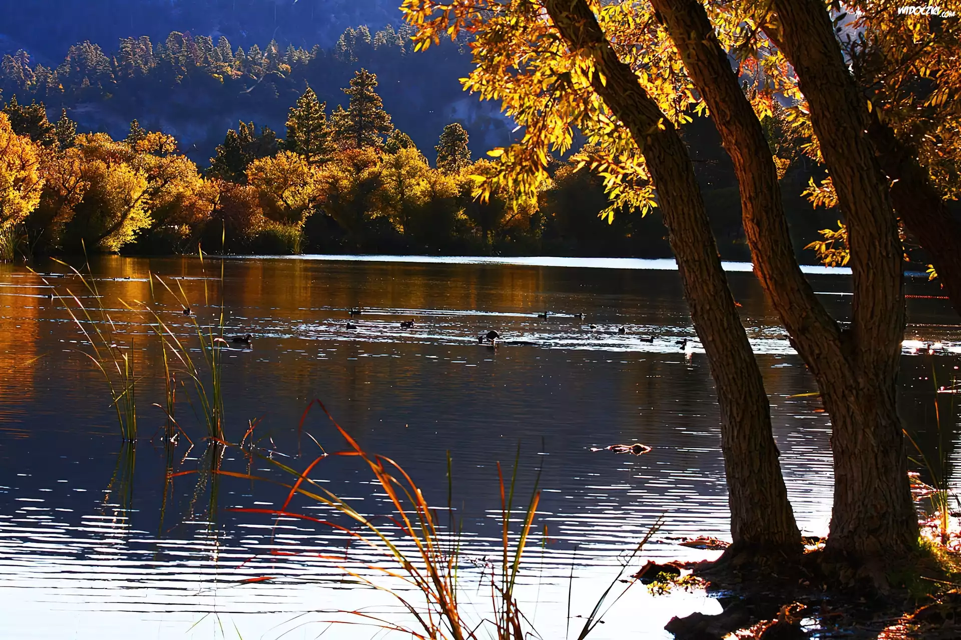 Zdjęcia, Jesień, Jezioro, Drzewa, Kalifornia