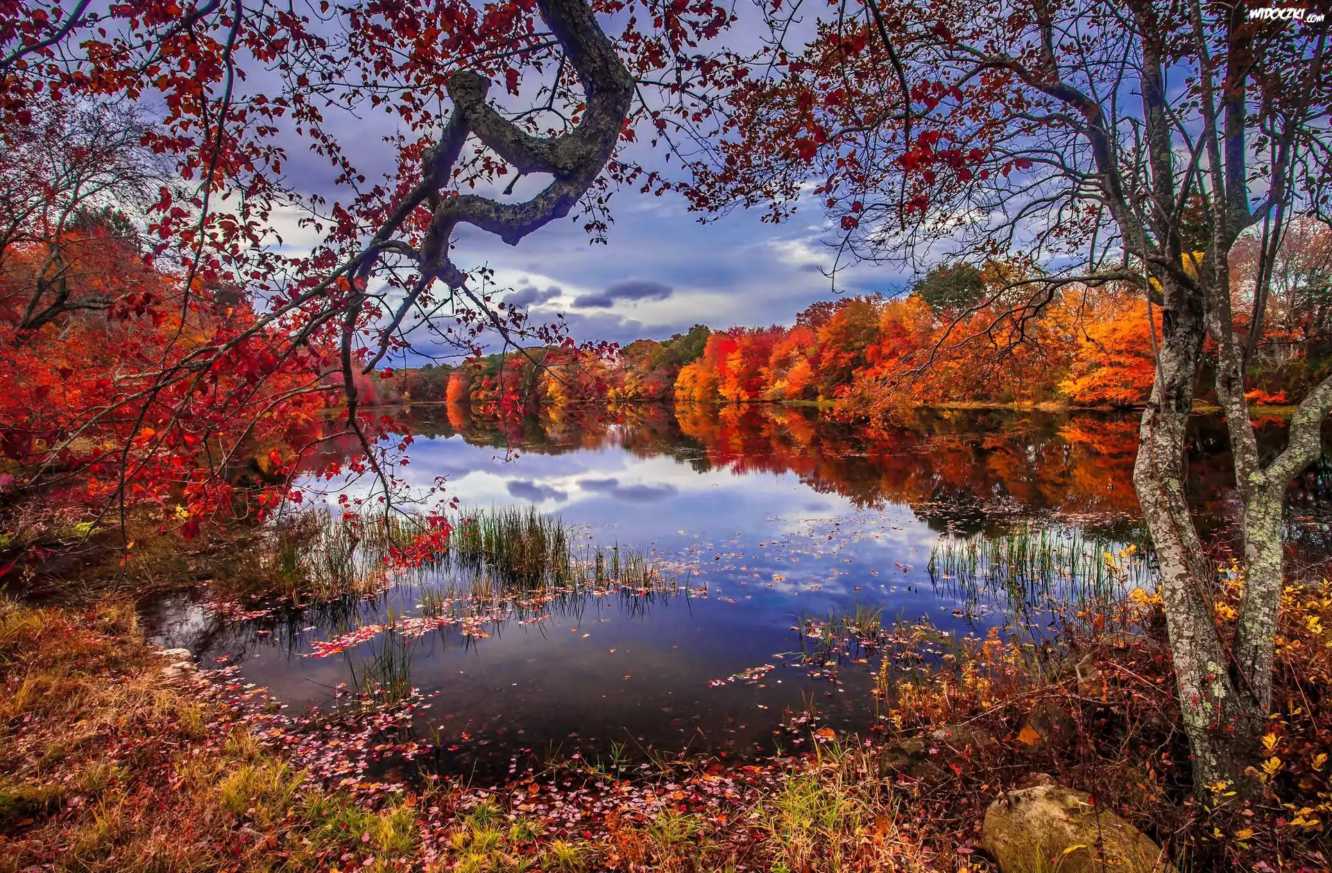 Zdjęcia, Jesień, Jezioro, Drzewa, Liście