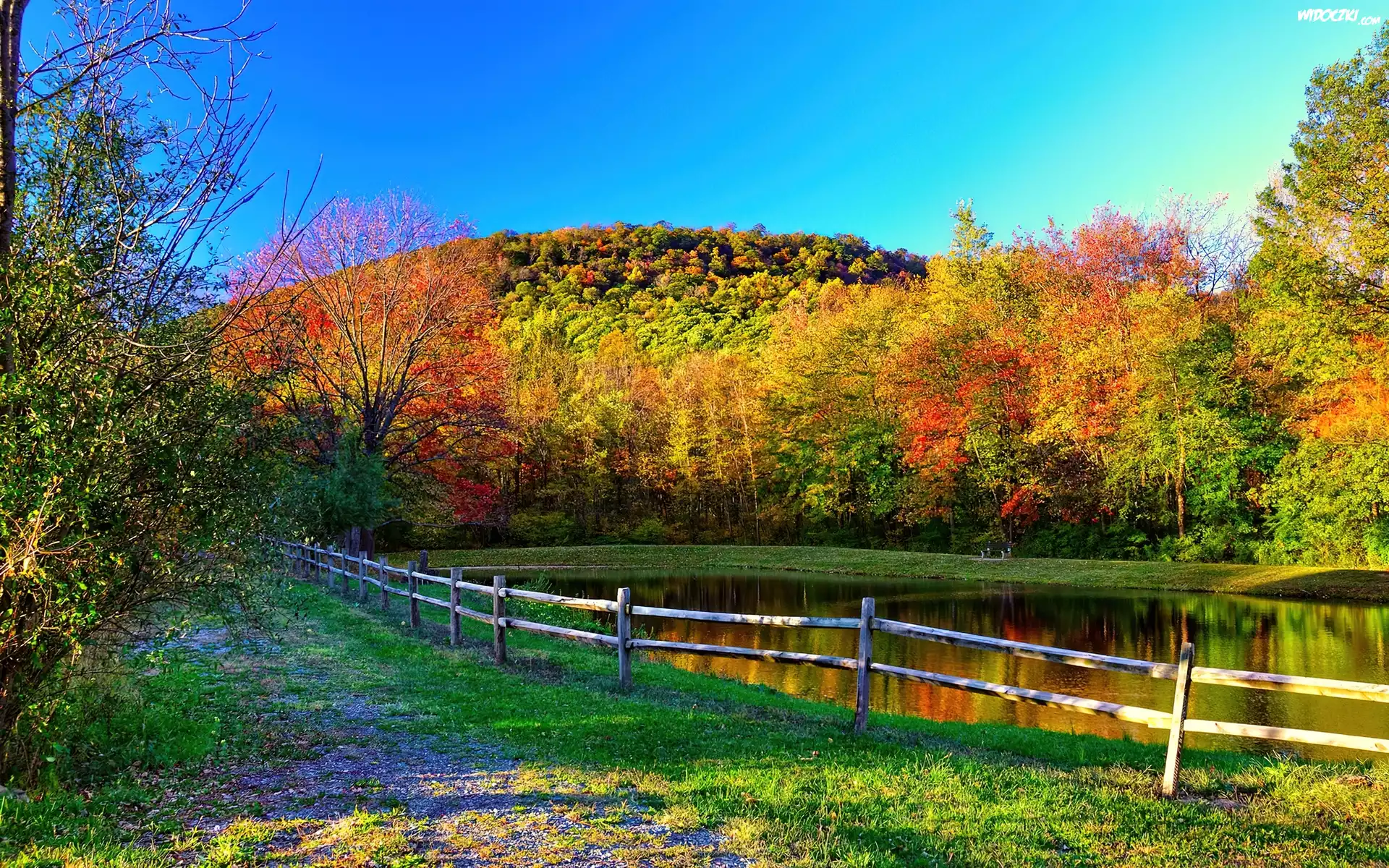 Zdjęcia, Jesień, Kolorowe, Drzewa, Jezioro