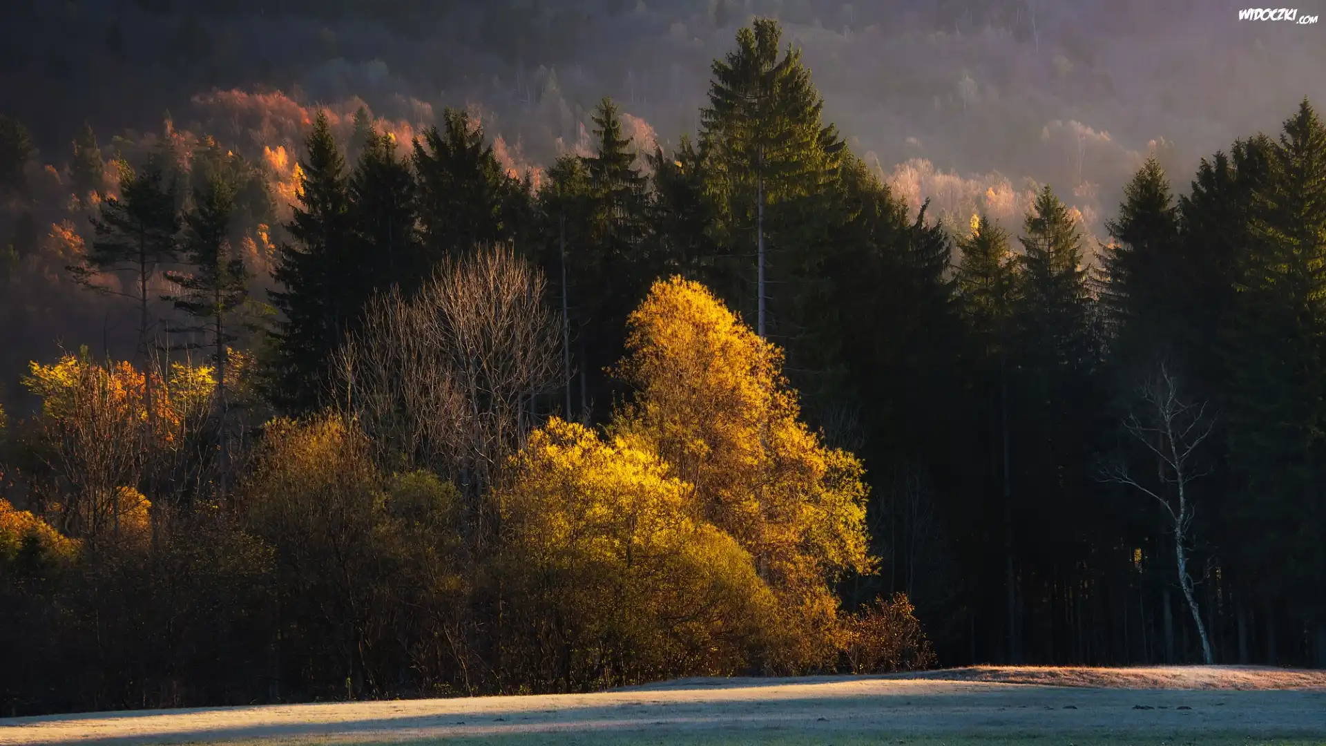 Zdjęcia, Jesień, Kolorowe, Drzewa, Las