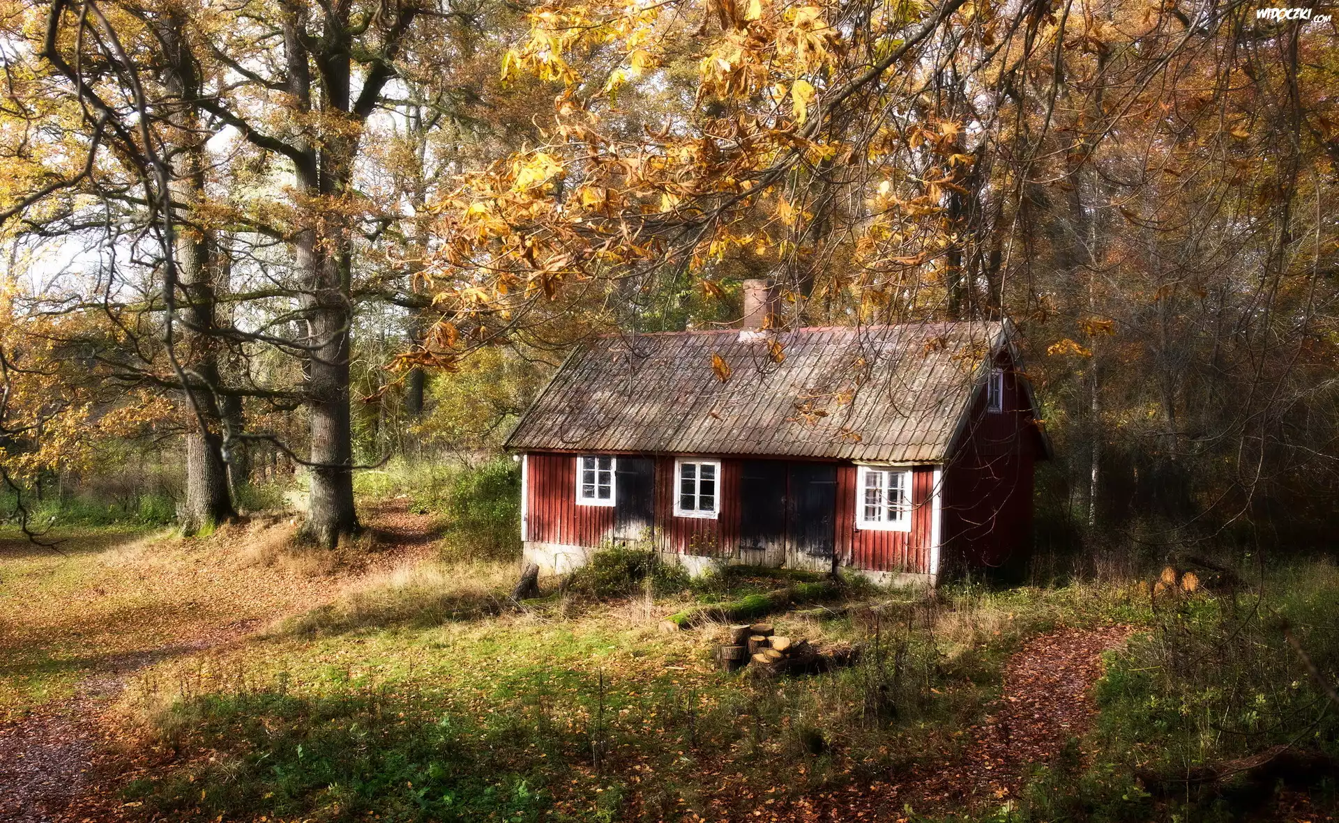 Zdjęcia, Jesień, Las, Drzewa, Dom