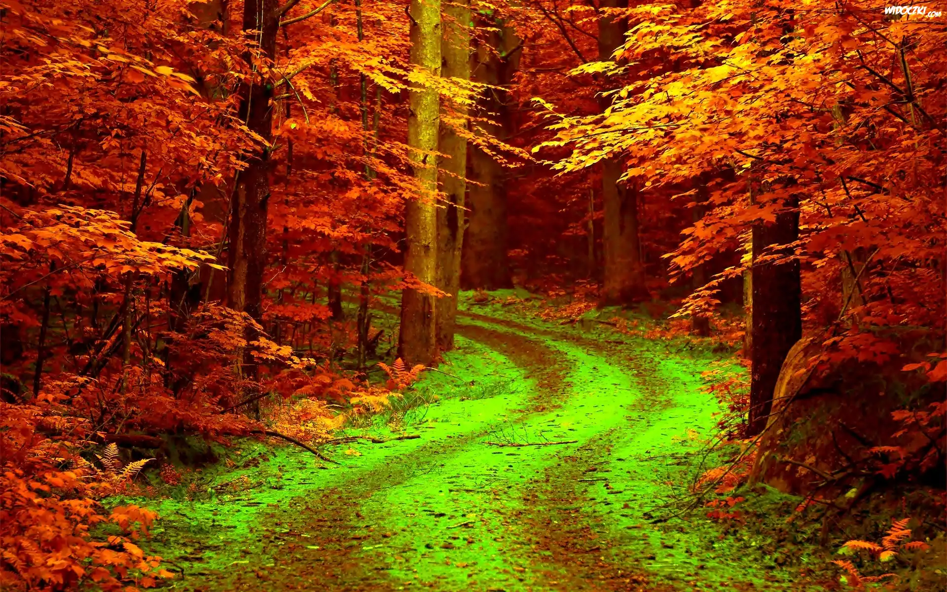 Zdjęcia, Jesień, Las, Drzewa, Droga