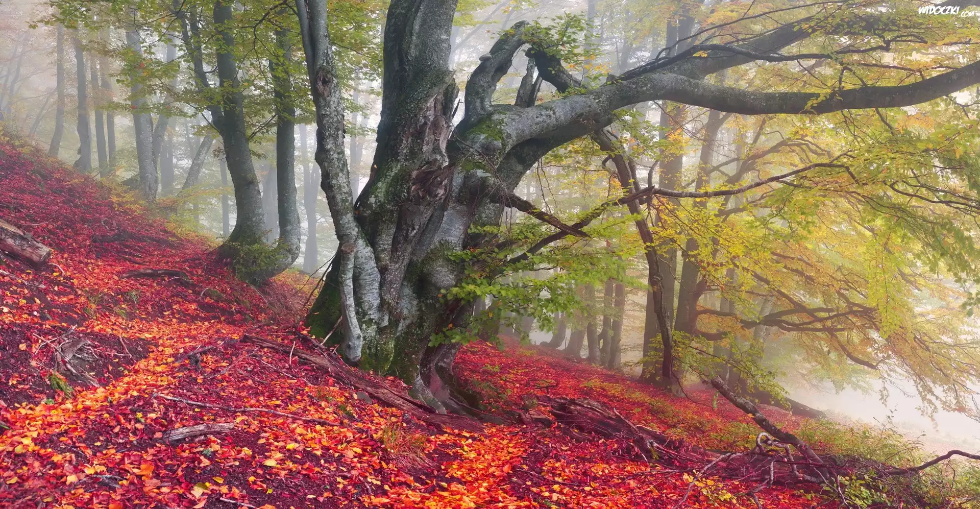 Jesień, Las, Drzewa, Konary