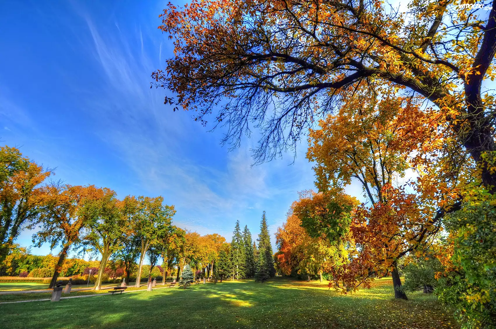 Zdjęcia, Jesień, Park, Drzewa, Niebo