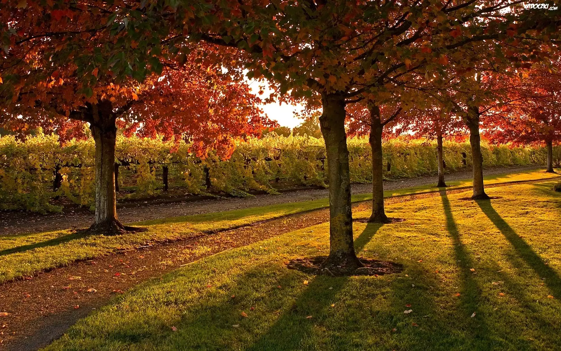 Zdjęcia, Jesień, Park, Drzewa, Trawa