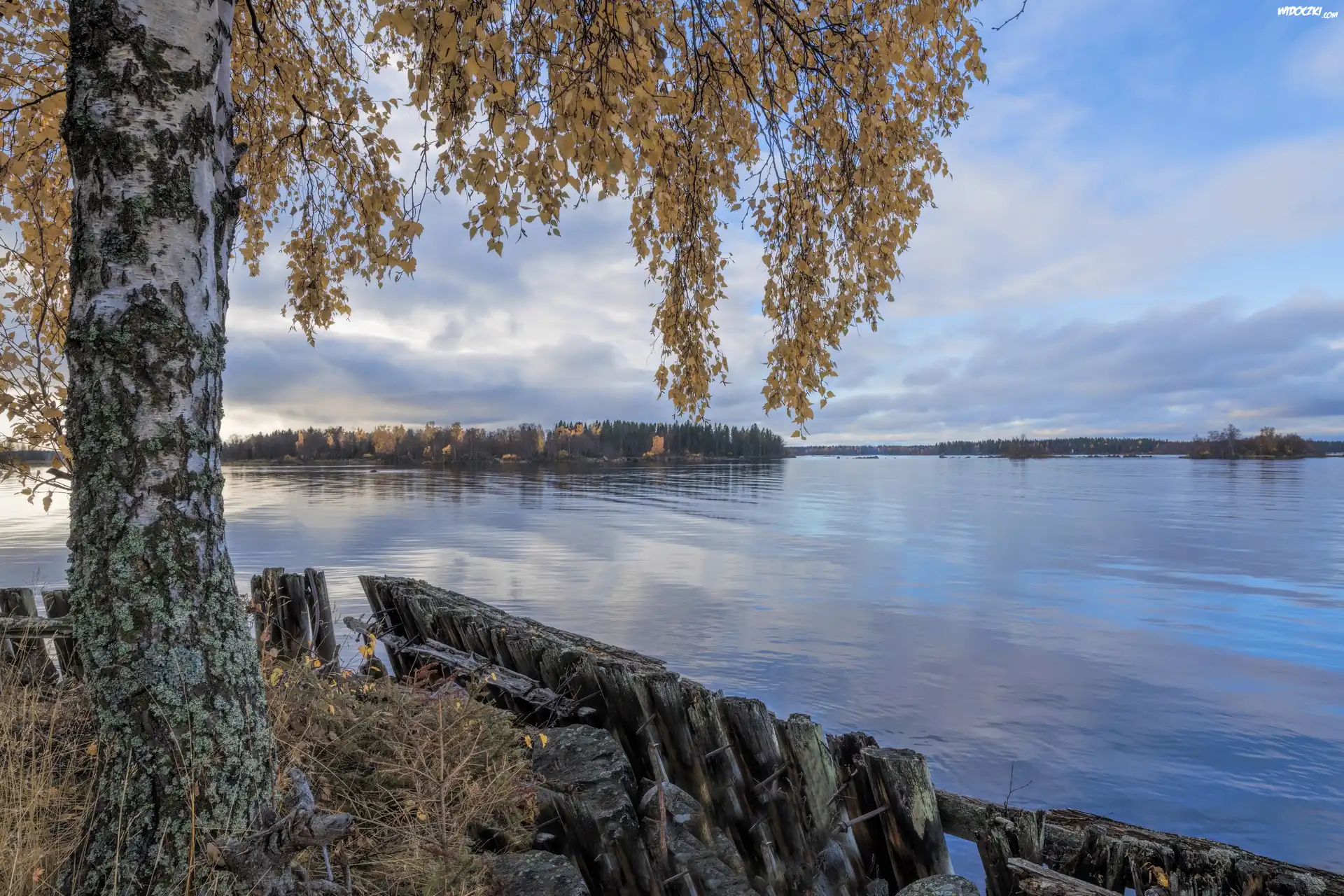 Zdjęcia, Jesień, Rzeka, Drzewa, Brzoza