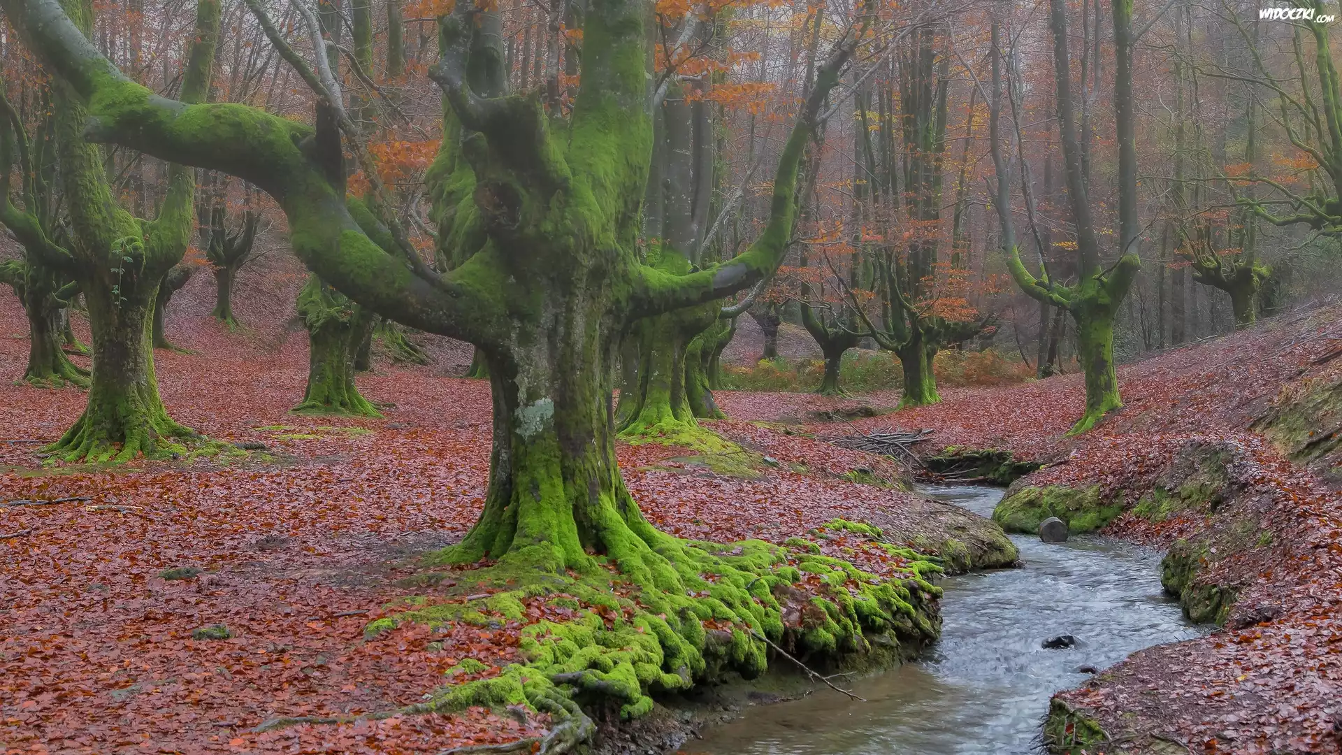 Zdjęcia, Jesień, Las, Rzeka, Drzewa, Mech