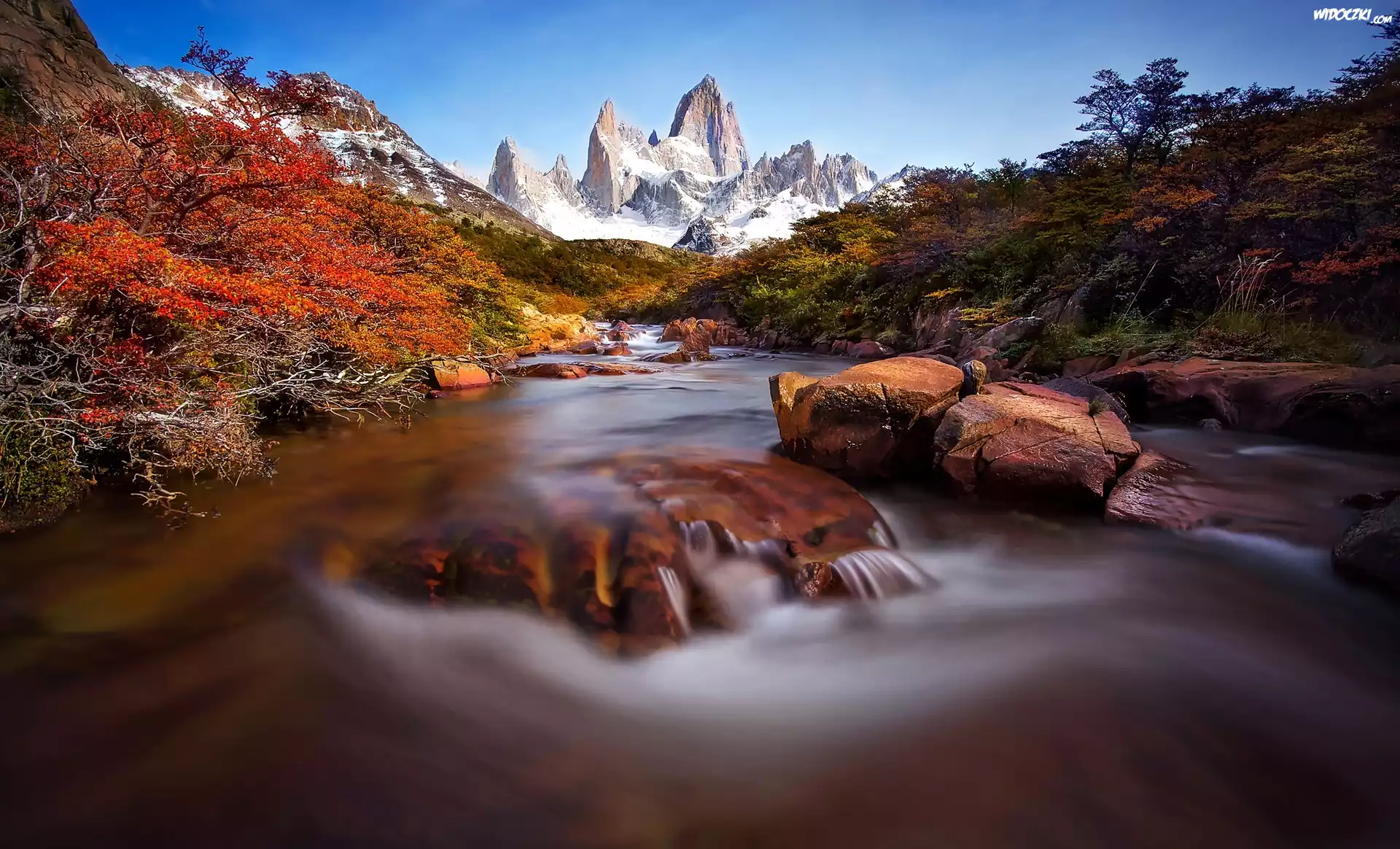 Zdjęcia, Jesień, Góry, Rzeka, Głazy, Drzewa