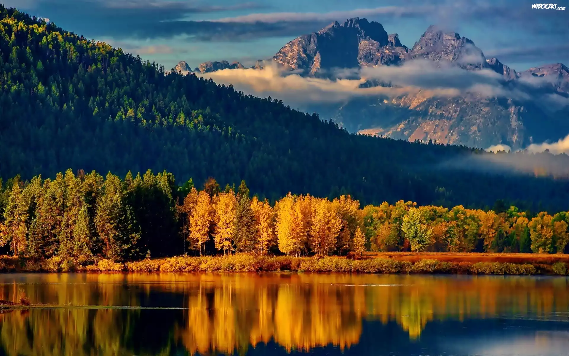 Jesień, Las, Jezioro, Góry, Odbicie