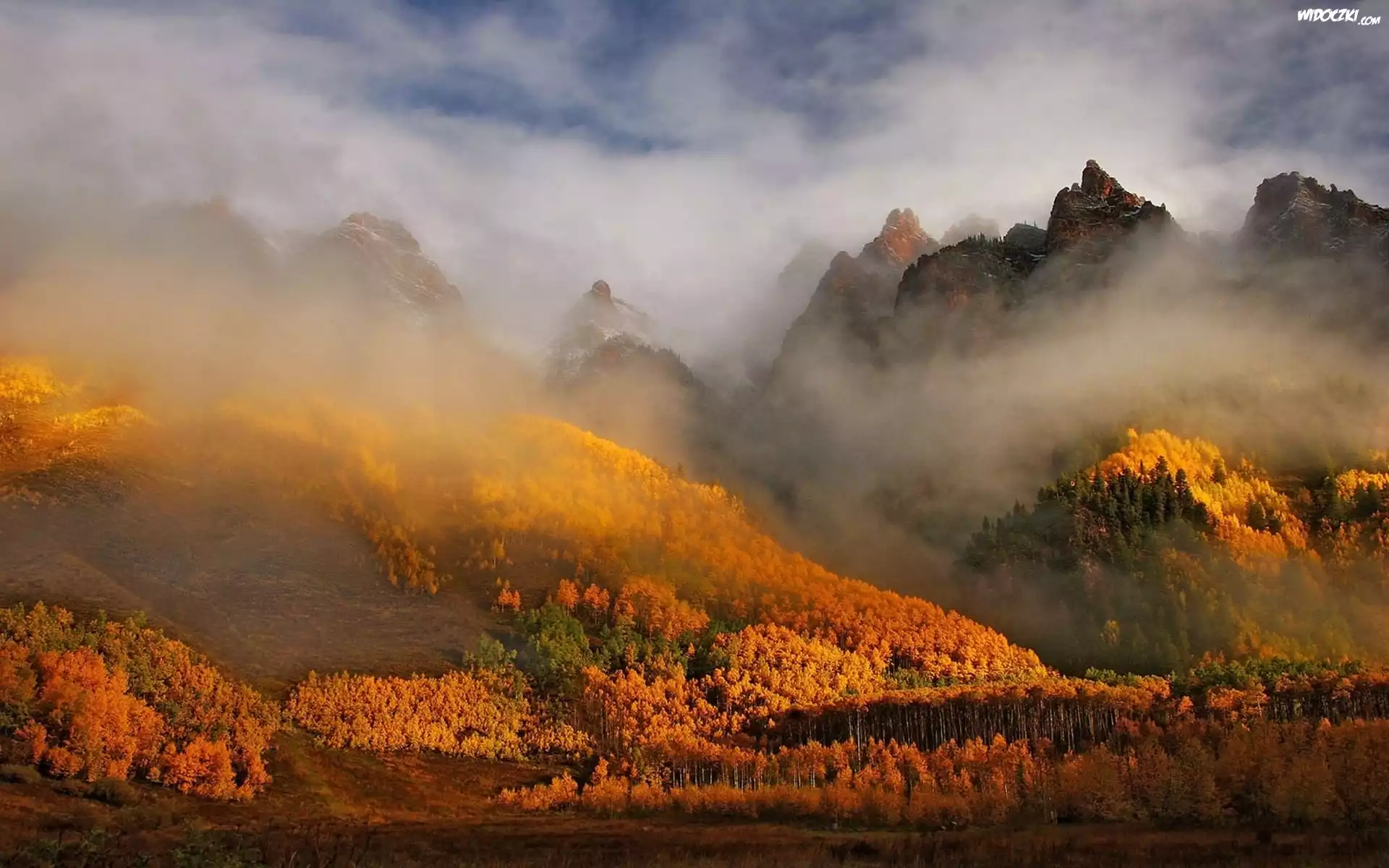 Zdjęcia, Jesień, Las, Góry, Chmury