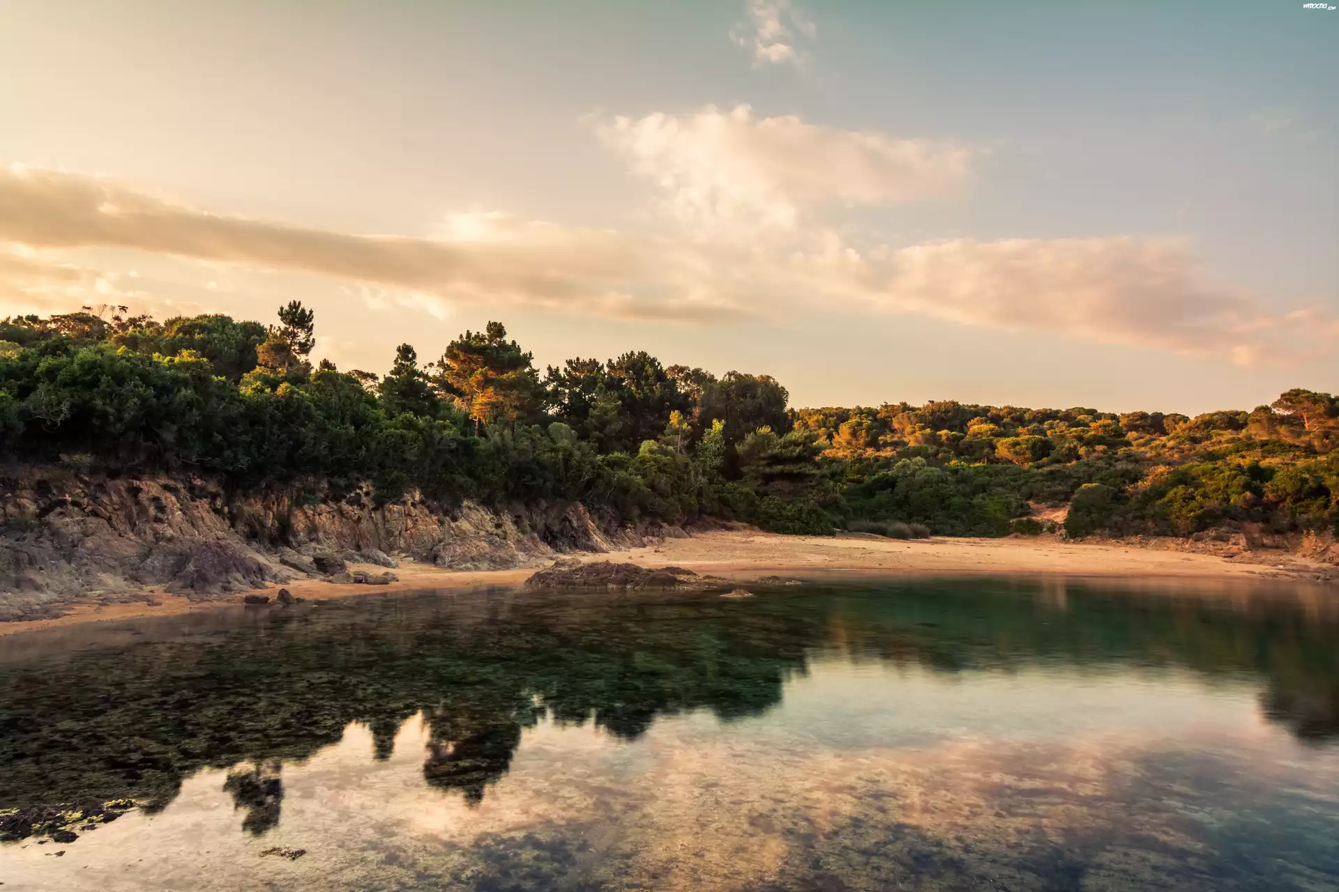 Zdjęcia, Jesień, Brzeg, Jeziora, Las