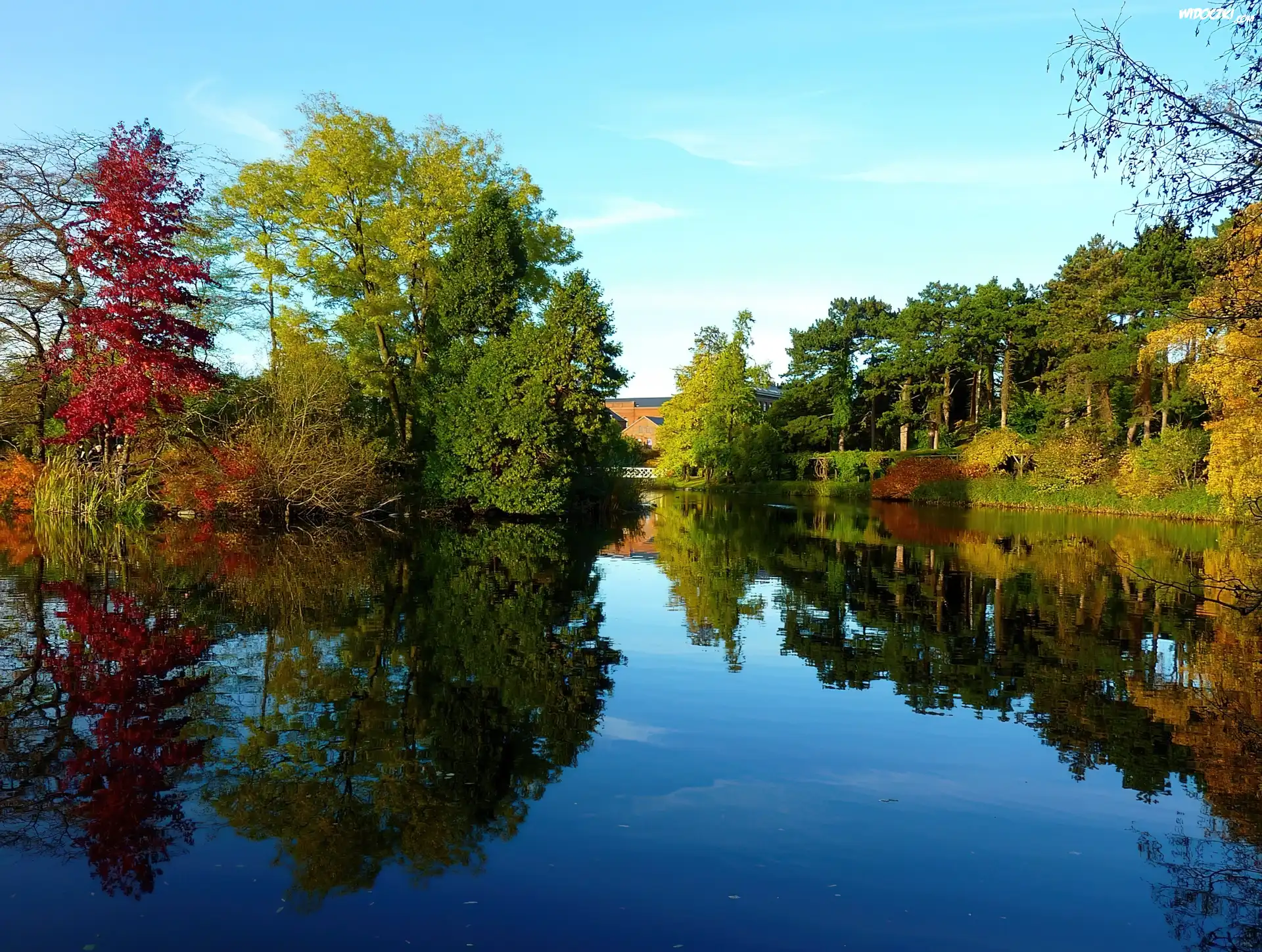 Jesień, Park, Jeziorko, Odbicie