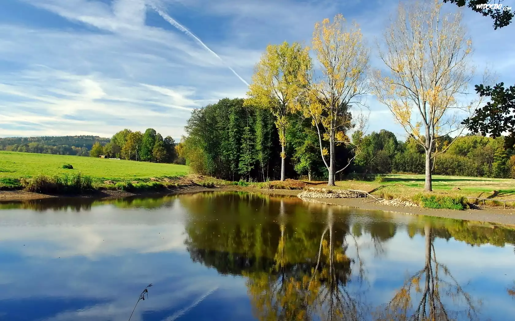 Zdjęcia, Jesień, Lasy, Łąki, Jezioro, Odbicie