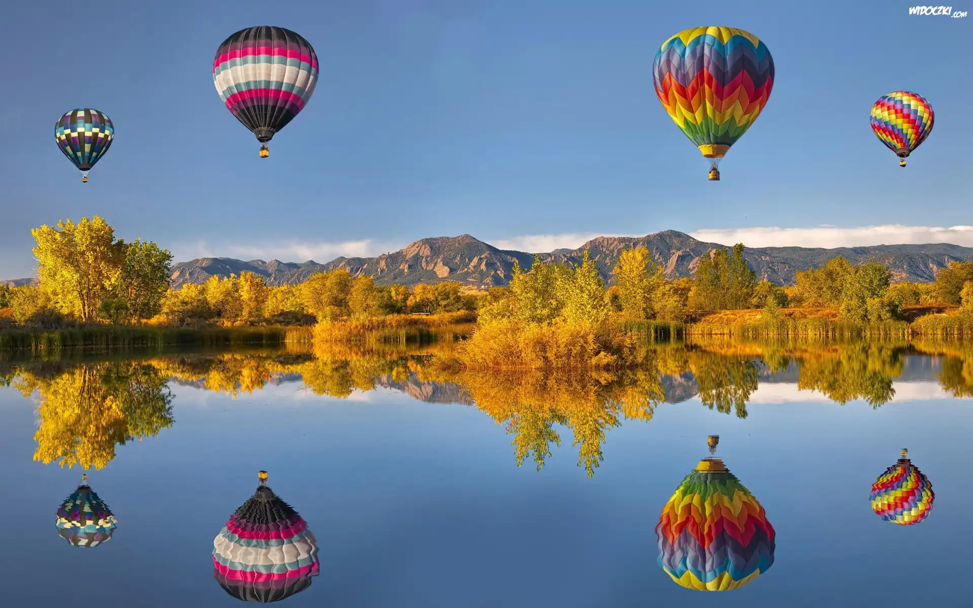 Jesień, Góry, Jezioro, Balony