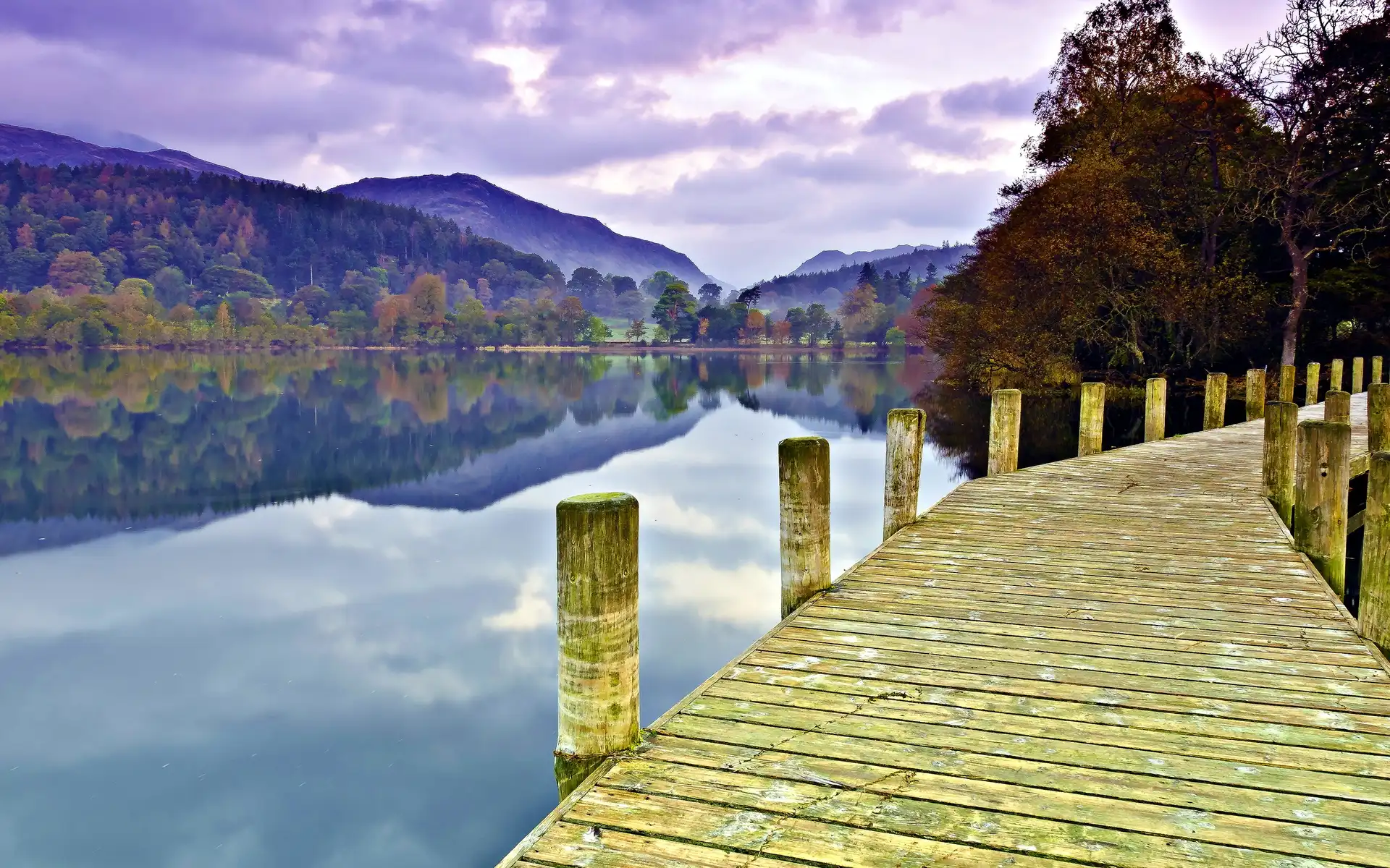 Jesień, Góry, Jezioro, Pomost
