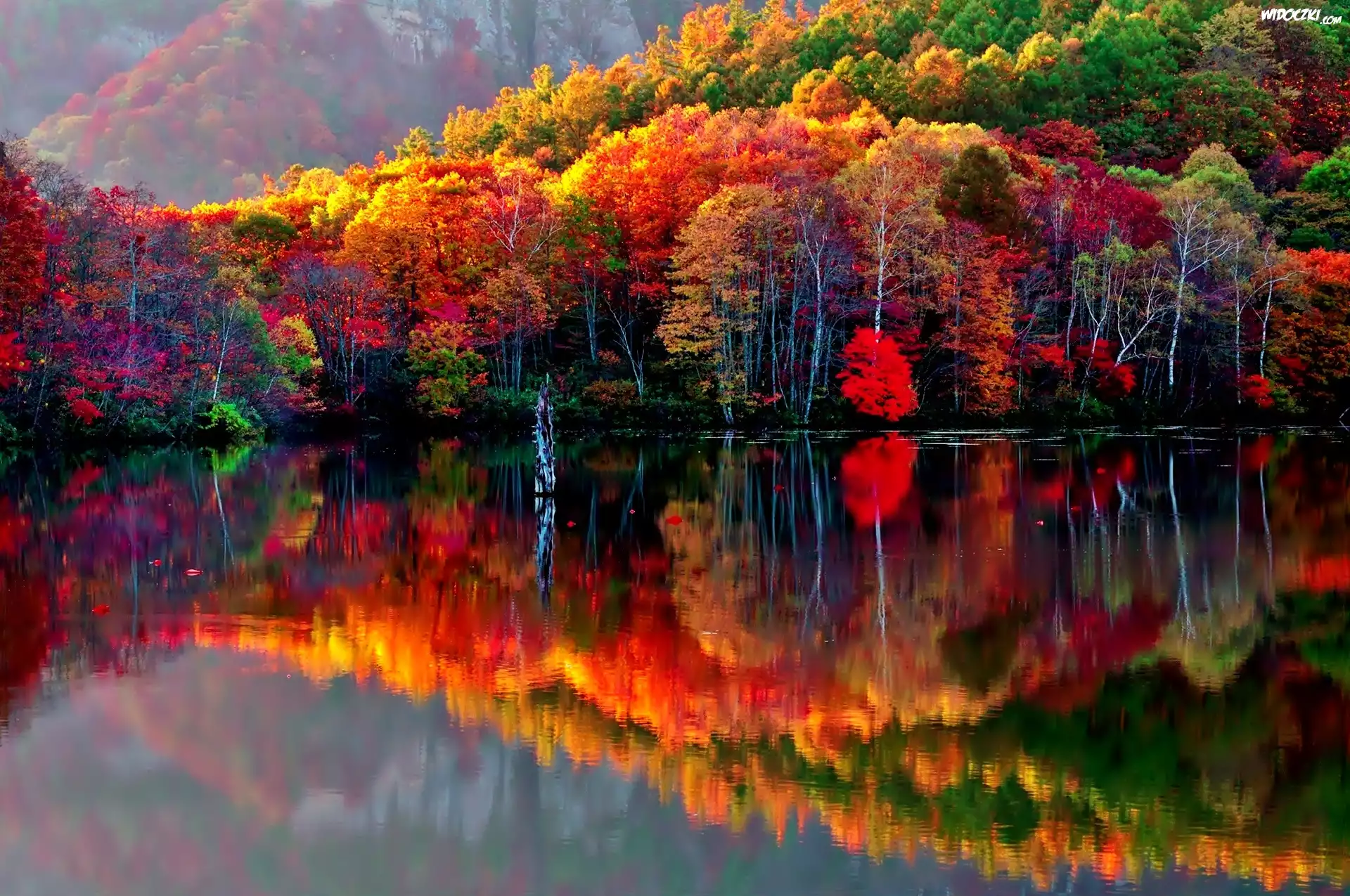 Zdjęcia, Jesień, Las, Jezioro, Odbicie