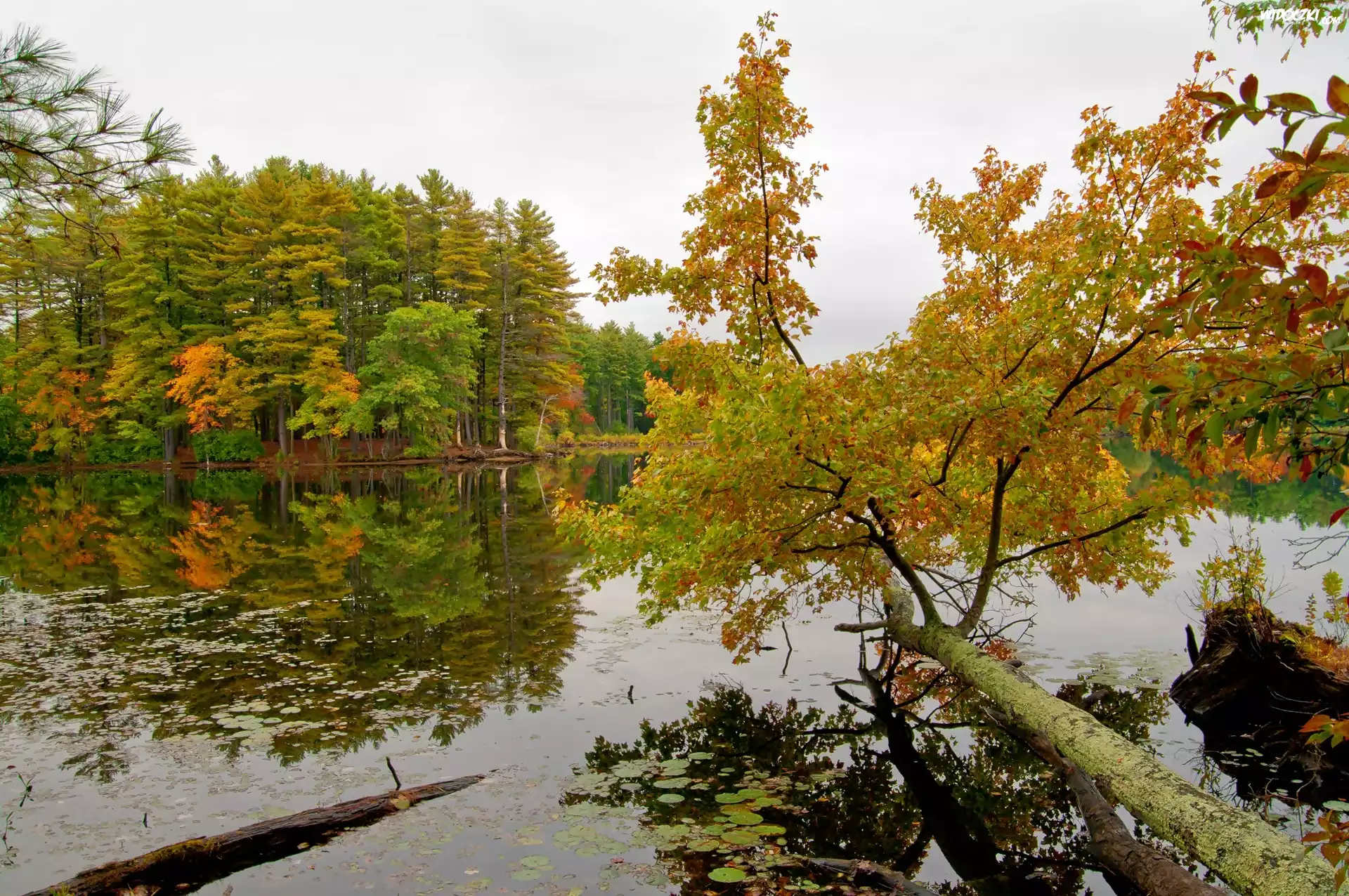 Zdjęcia, Jesień, Las, Jezioro, Odbicie