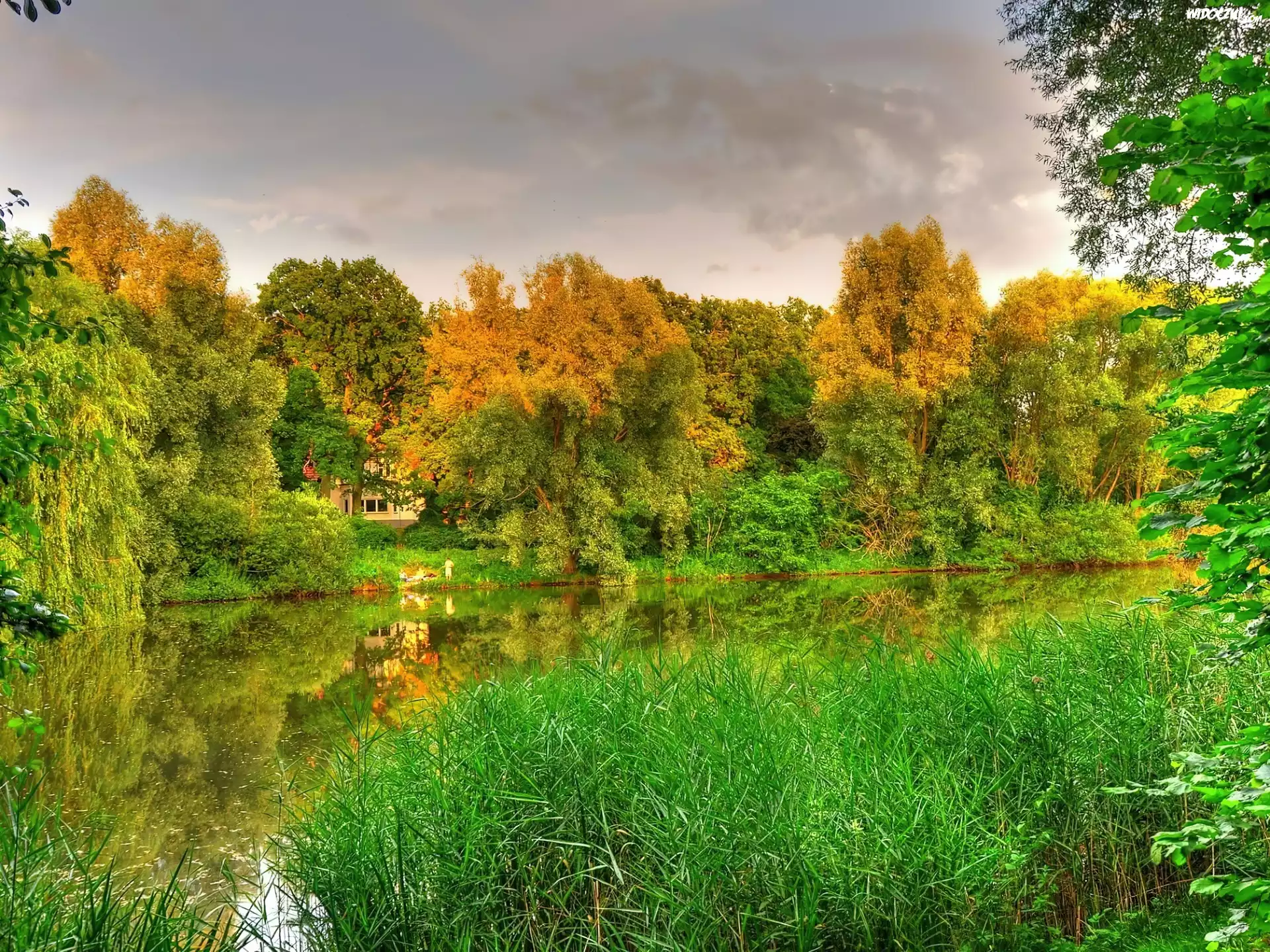 Zdjęcia, Jesień, Las, Jezioro, Trawy